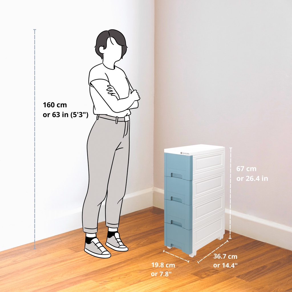 Home Gallery Natural Series Rolling Slim Drawer | 4 Layers | Dimension: L36.7xW19.8xH67cm
