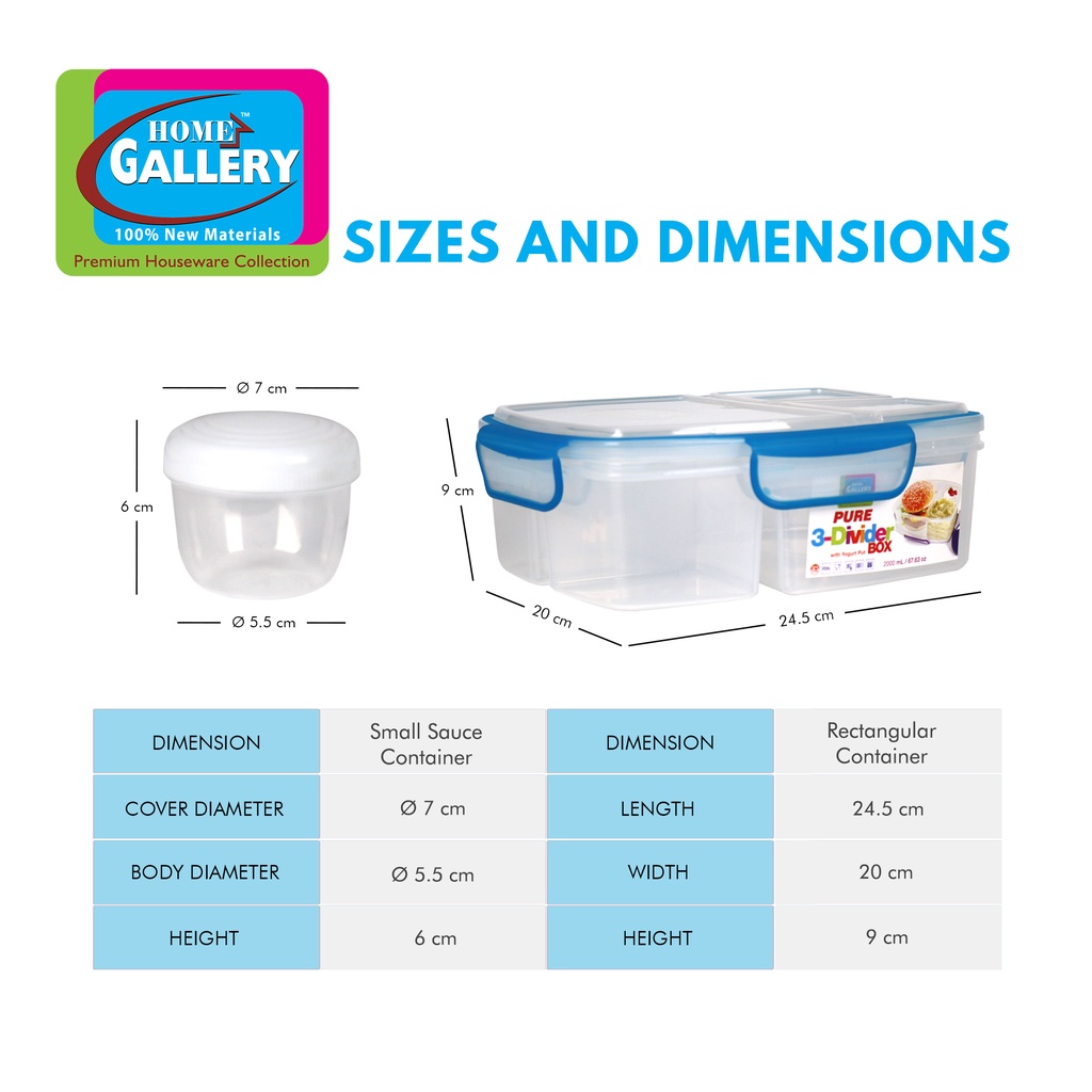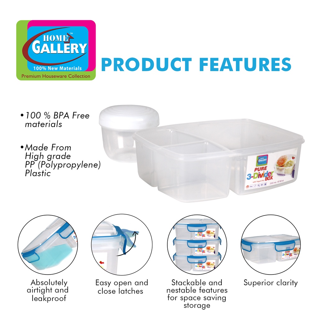 Home Gallery Pure Rectangular Food Keeper w/ Small Sauce Container 2L | PP (Polypropylene) FRC-2000D