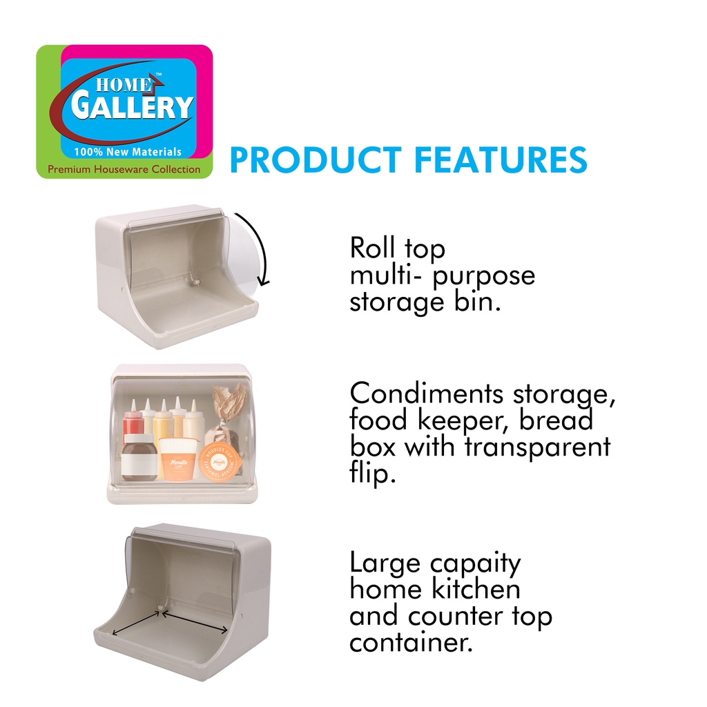 Home Gallery Roll Top Multi-Purpose Storage Hood Box w/ Transparent Flip | Large Capacity Container