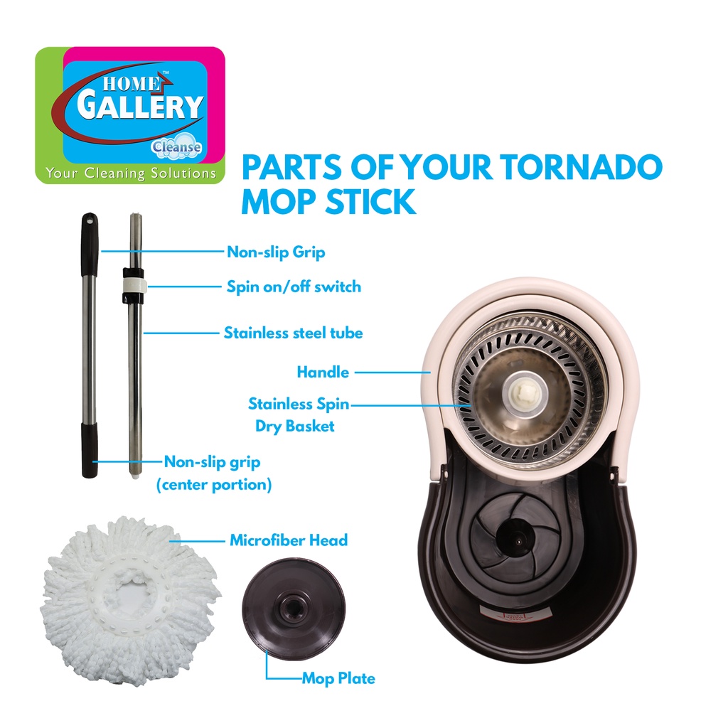 Home Gallery Tornado Mop & Spin-Dry Bucket Set w/ 1 Microfiber Mop Head L46.5xW26.5xH21cm ZT11M/2-SS