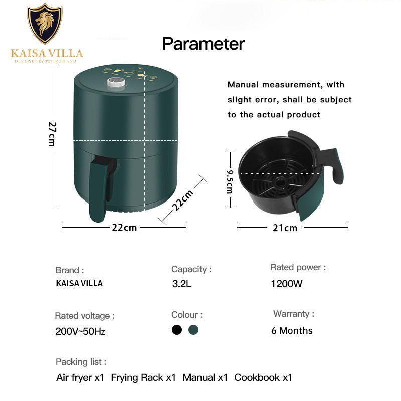 Kaisa)o>Villa)dy~Air Fryer Electric Fryer Oil Free Air Fryer Oven Fries Tools)my}Non>gP)Stick>de>Ai