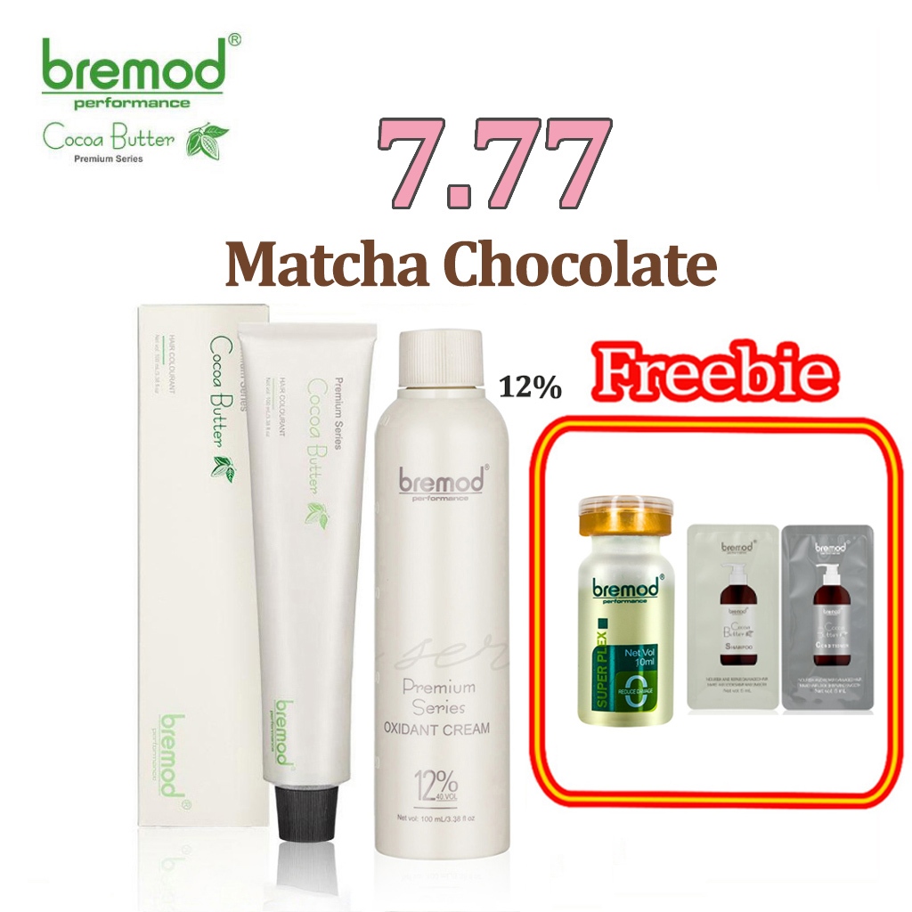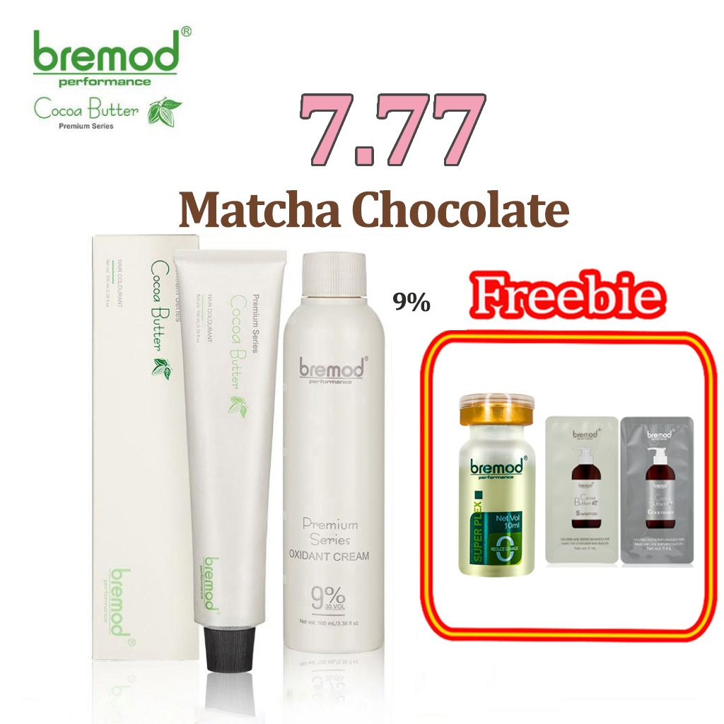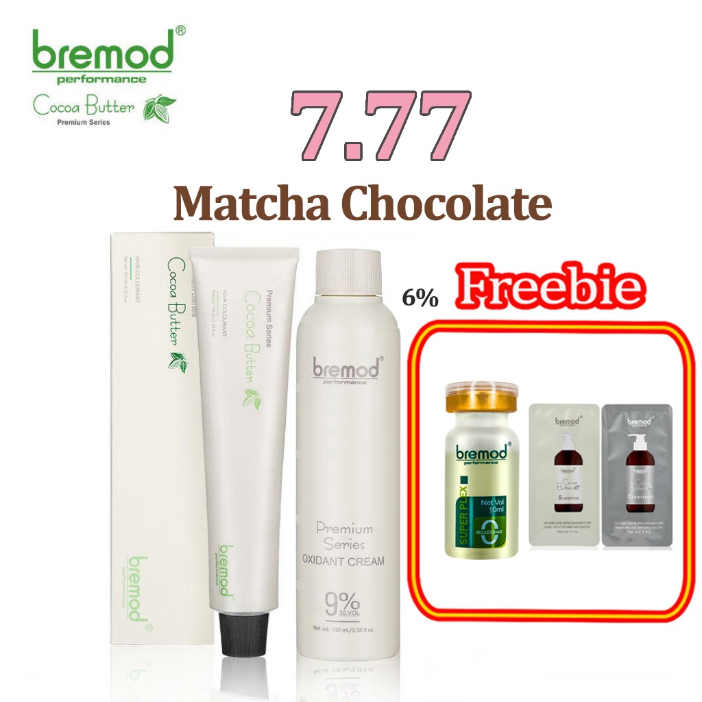Bremod Matcha Chocolate 7.77 Cocoa Butter Hair Color 100ml Oxidizer 100ml Hair Care 50ml Tool Set