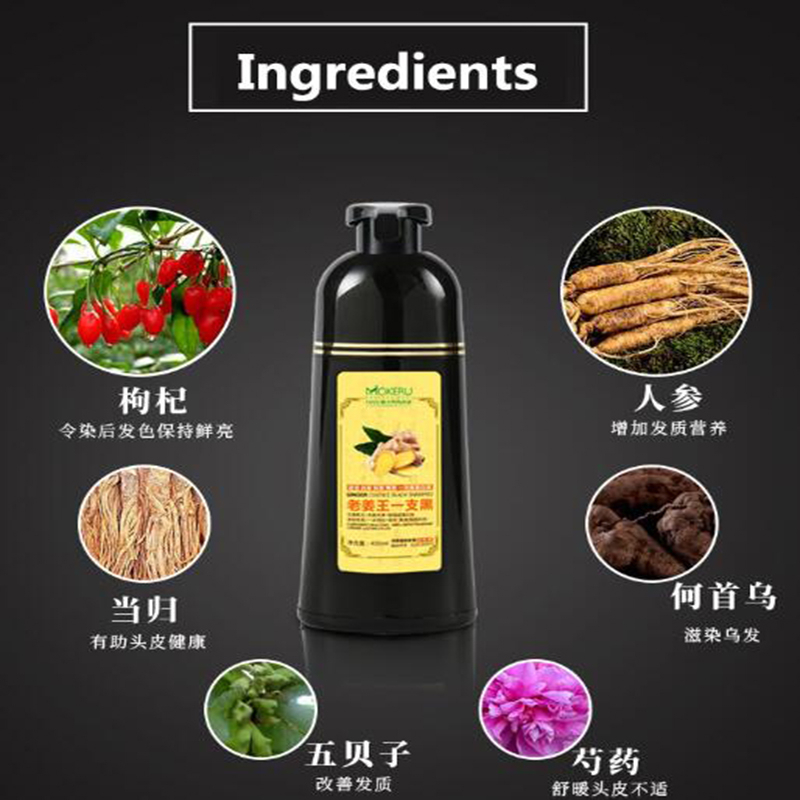 Mokeru 500mL Natural Black Hair Shampoo Hair Dye Professional 3-In-1 Wash/Nourish/Dye Grey Hair White Hair Turn To Black