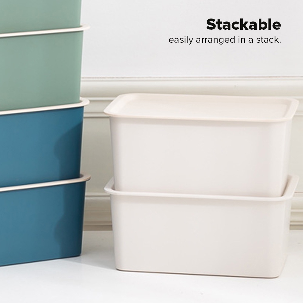 Home Multifunctional Storage Box Stackable Basket Bin with Lid Space Saving Household