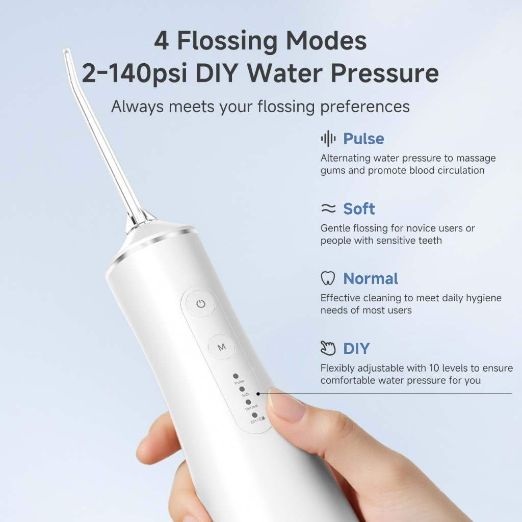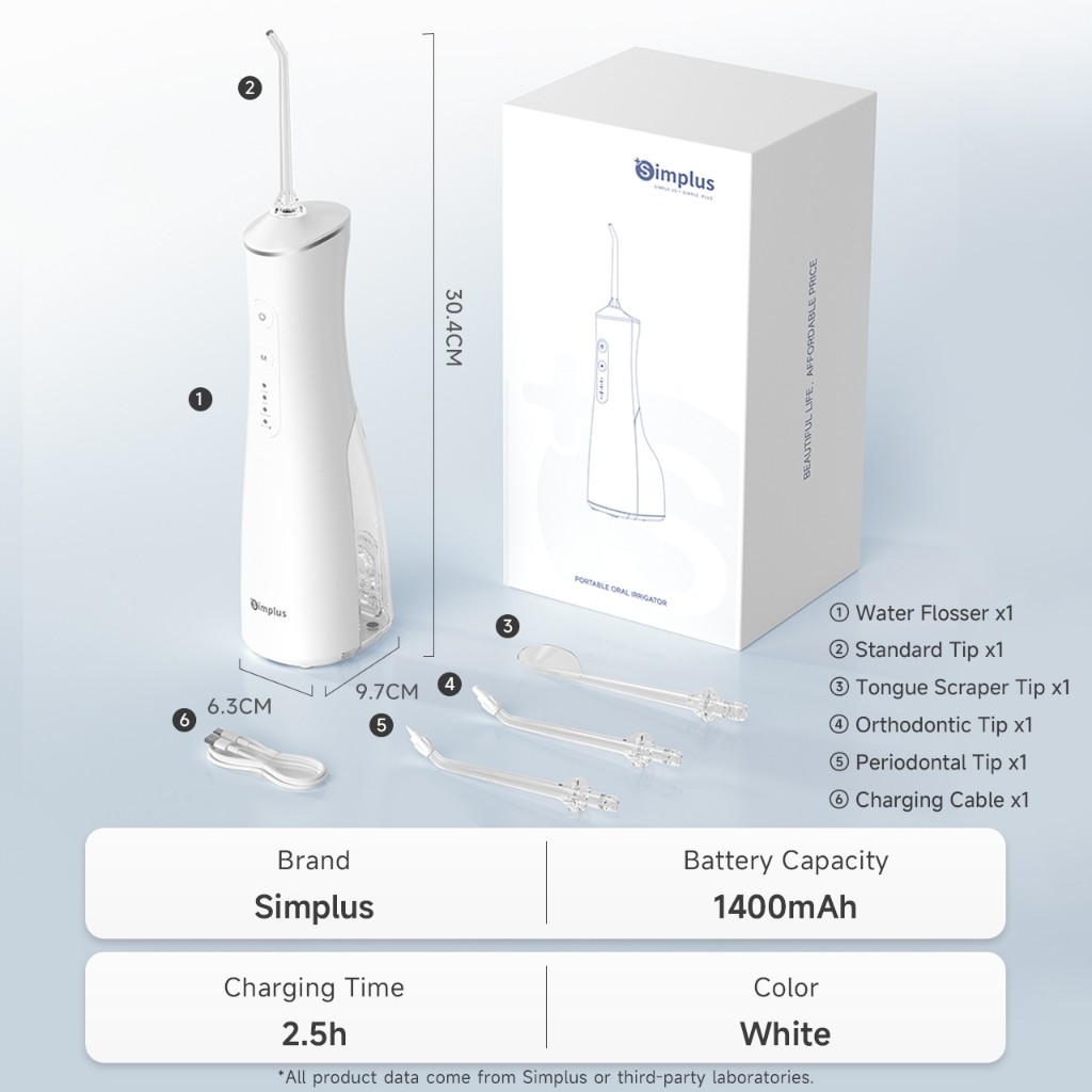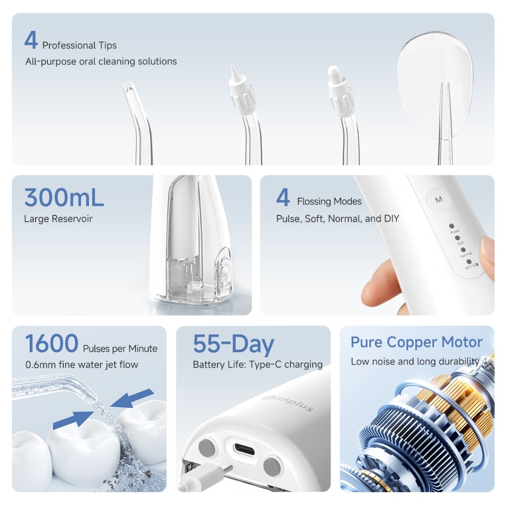 SimplusPink Water Flosser 300mL Oral Irrigator Dental Kit Rechargeable Travel Portable 4 Nozzle Tips