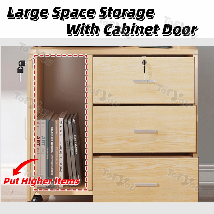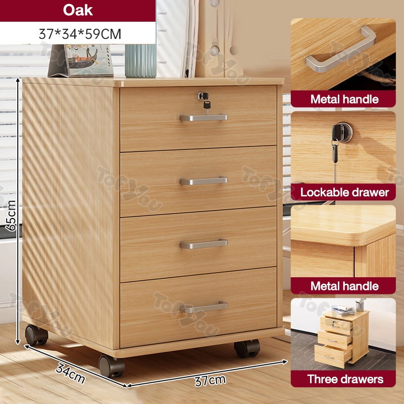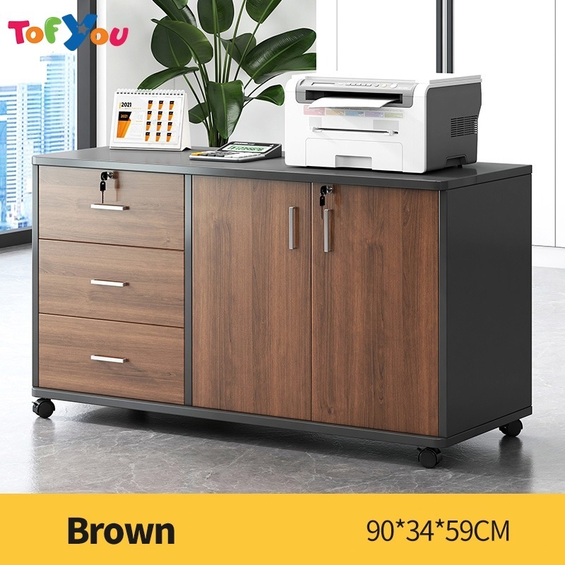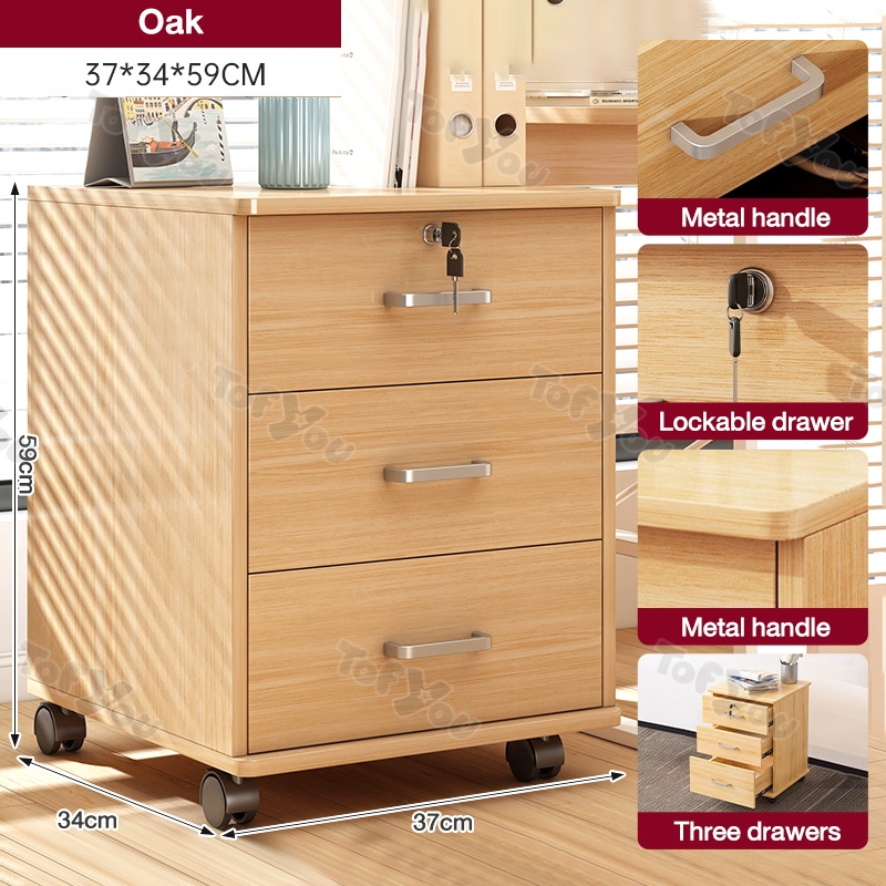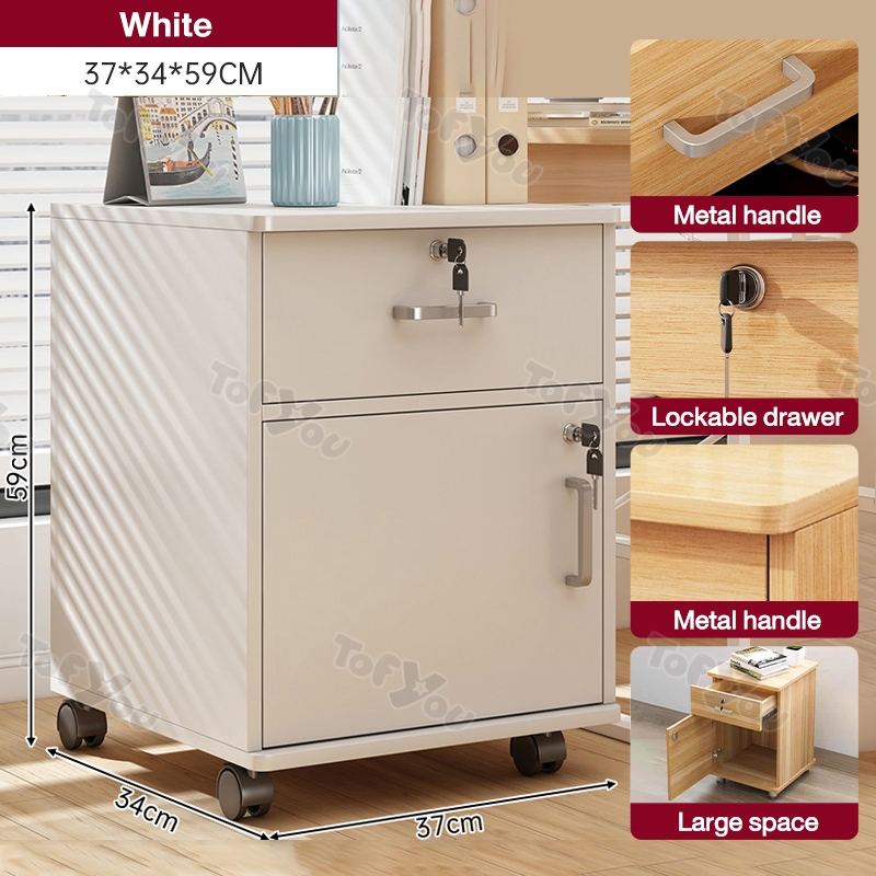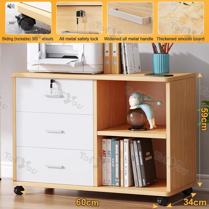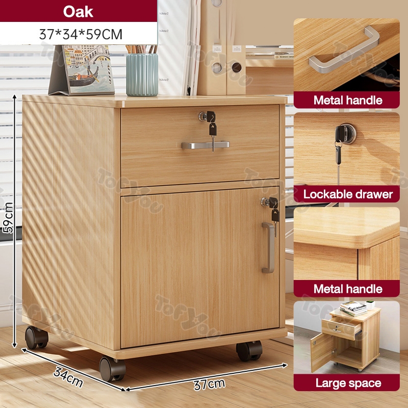 Home Office File Cabinet with Lock Wooden Locker Data Storage Cabinet Drawer Movable Bookcase