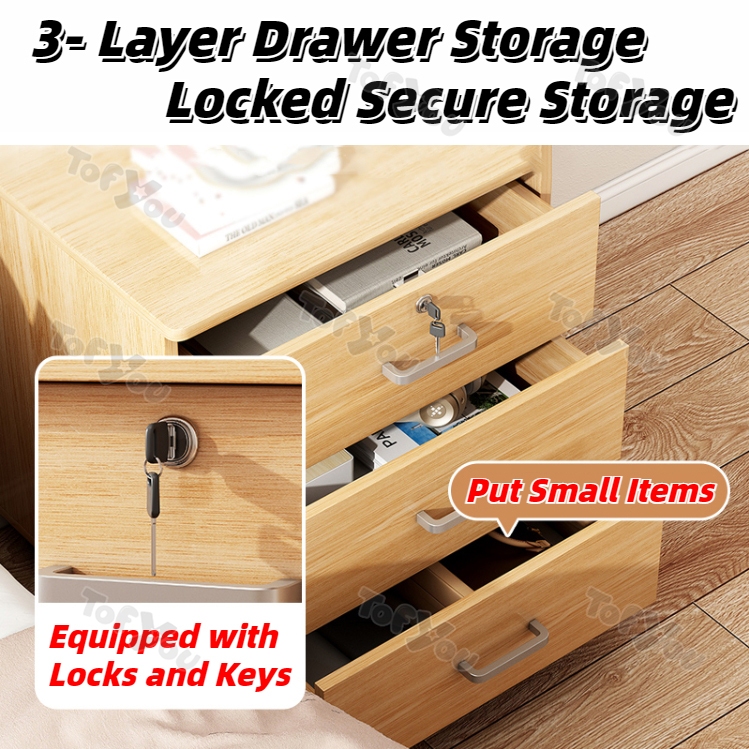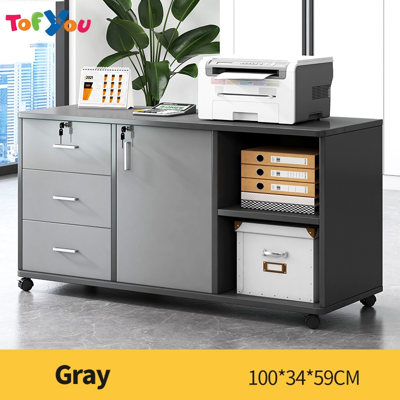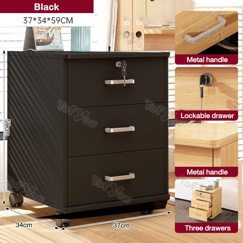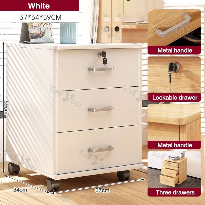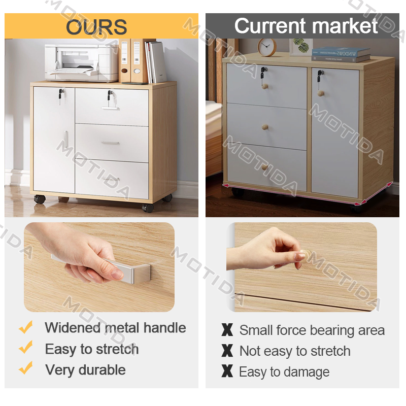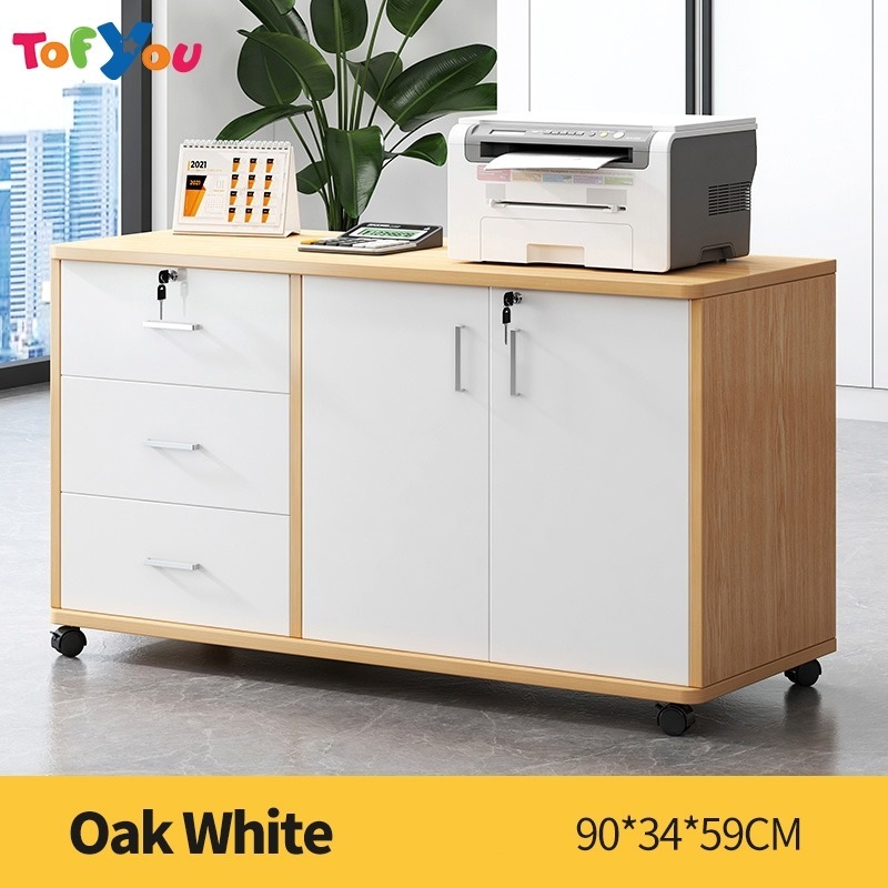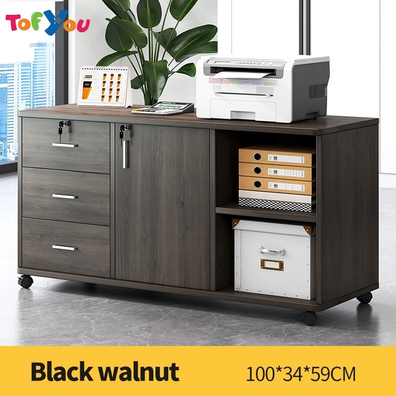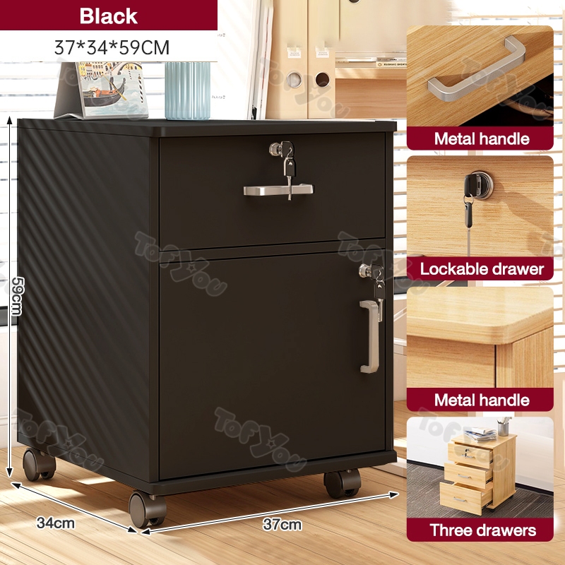 Home Office File Cabinet with Lock Wooden Locker Data Storage Cabinet Drawer Movable Bookcase