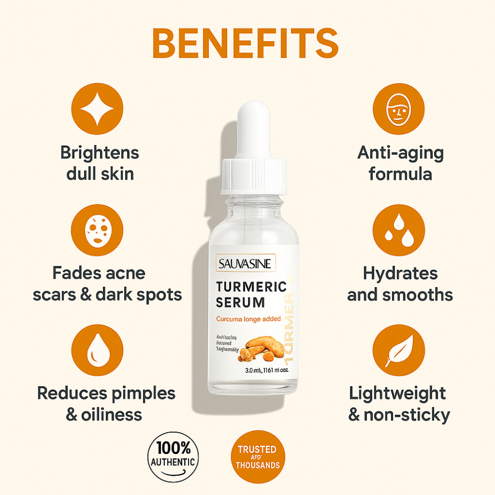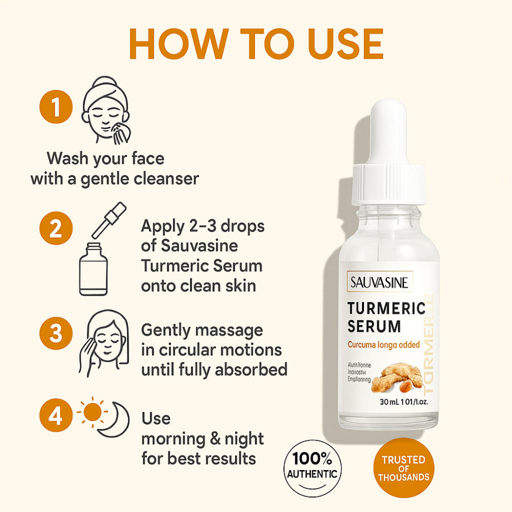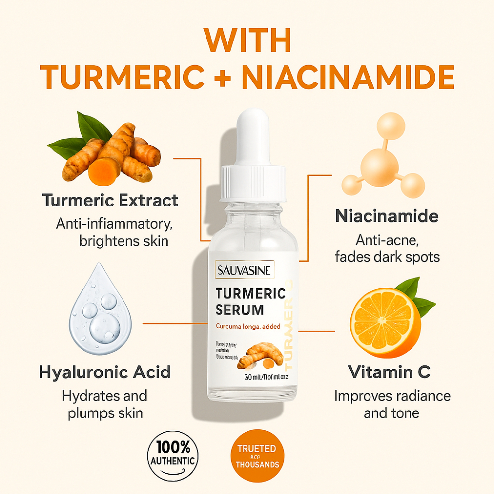 Sauvasine Turmeric Serum | Brightening, Anti-Acne, Dark Spot Removal, Anti-Aging Face Serum