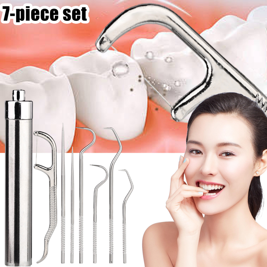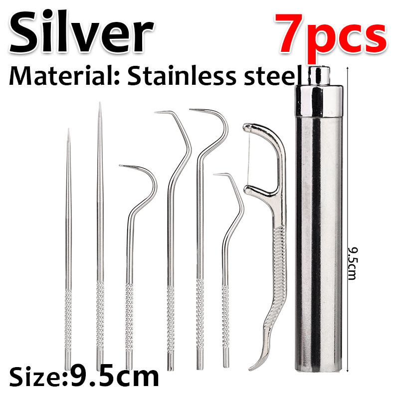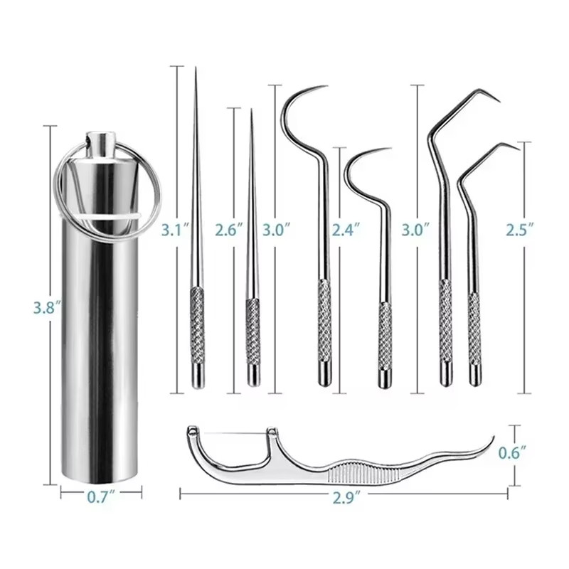Portable Dental Tool Set - Flossing Tooth Picking Tool - Stainless Steel Spiral Ear Pick Spoon Kit - Oral Hygiene Metal Tartar Removal