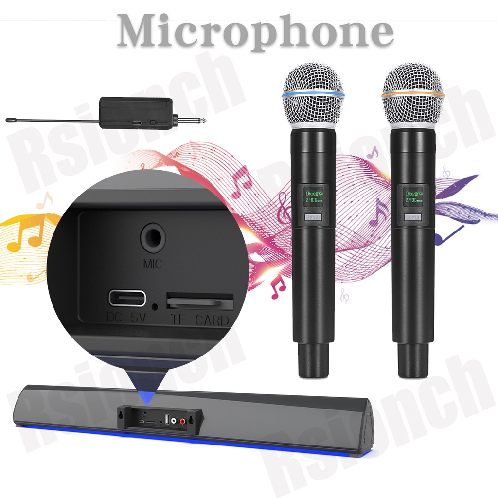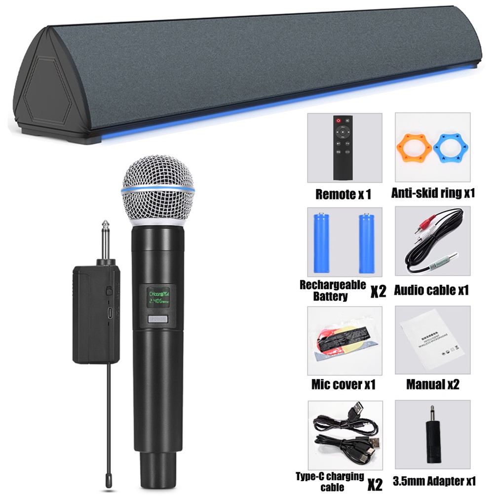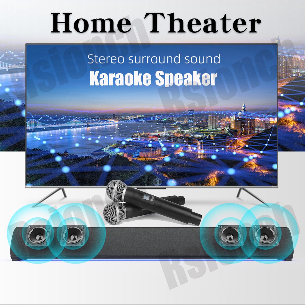 Home Theater Microphone Sound Bar KTV Wireless Karaoke EQ TV Speaker Soundbar with 2 Mic Subwoofer