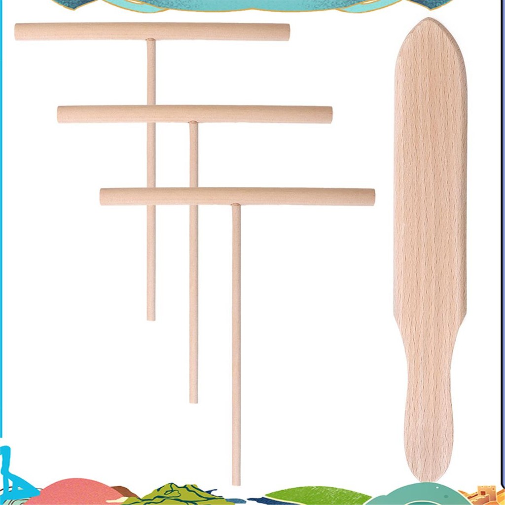 4 Piece Spatula Set Wooden T Sticks for Spreading Pancake Batter Crepe Spatulas and Spreader Wood Color Utensils for Uniform Crepe Maker
