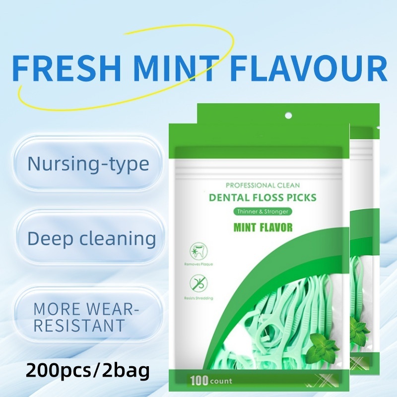 100 Count_Pack Mint Flavored Dental Floss Picks Original Gentle Clean Soft Floss with Superior Strength Cleaning Between Teeth Dental Floss Picks