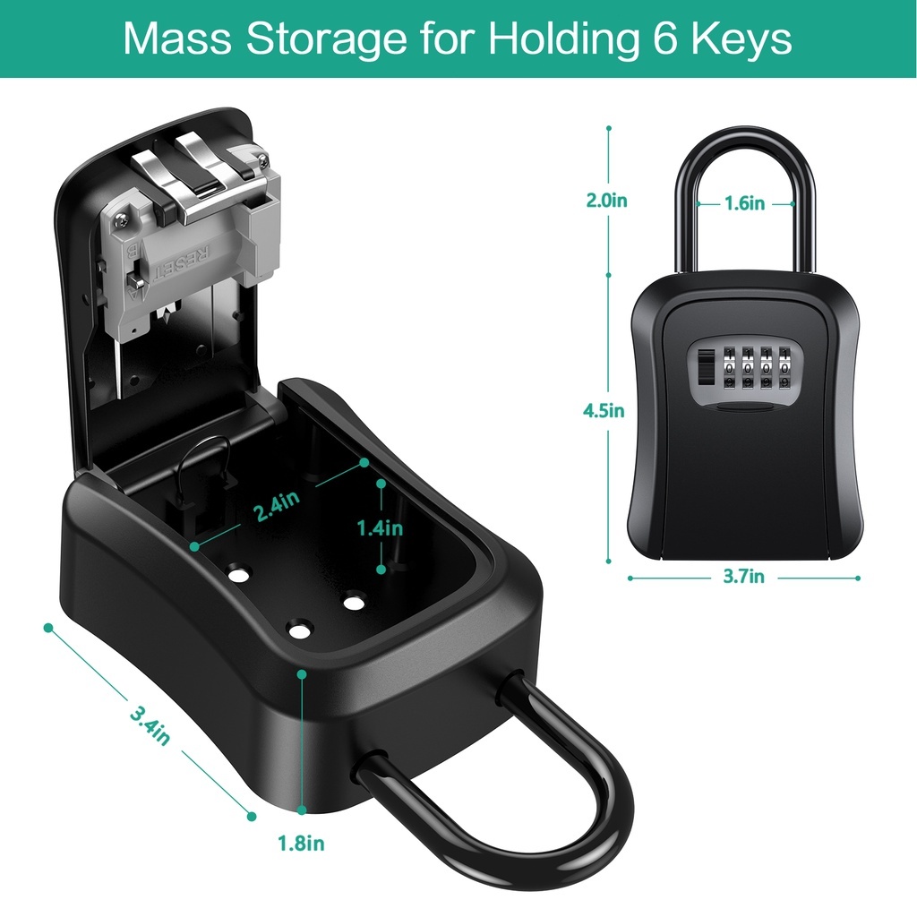 Home Weatherproof 4-Digit Combination Key Box Wall Mounted Padlock Storage Box UN