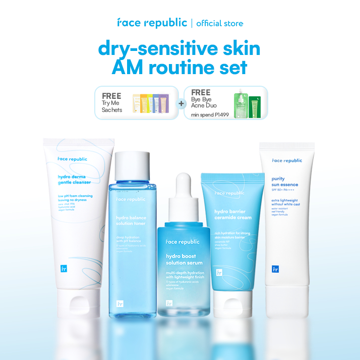 Face Republic Dry Sensitive (DS) Routine Set [Moisturizing, Acne / Hyaluronic Acid, BHA, CICA, SPF].