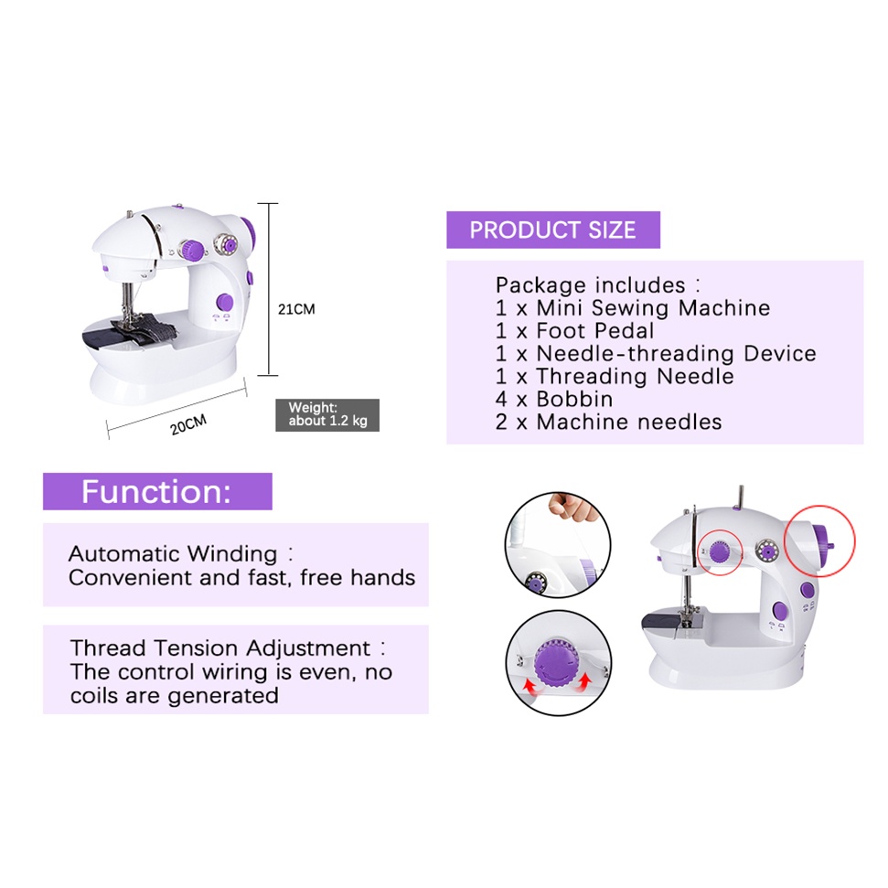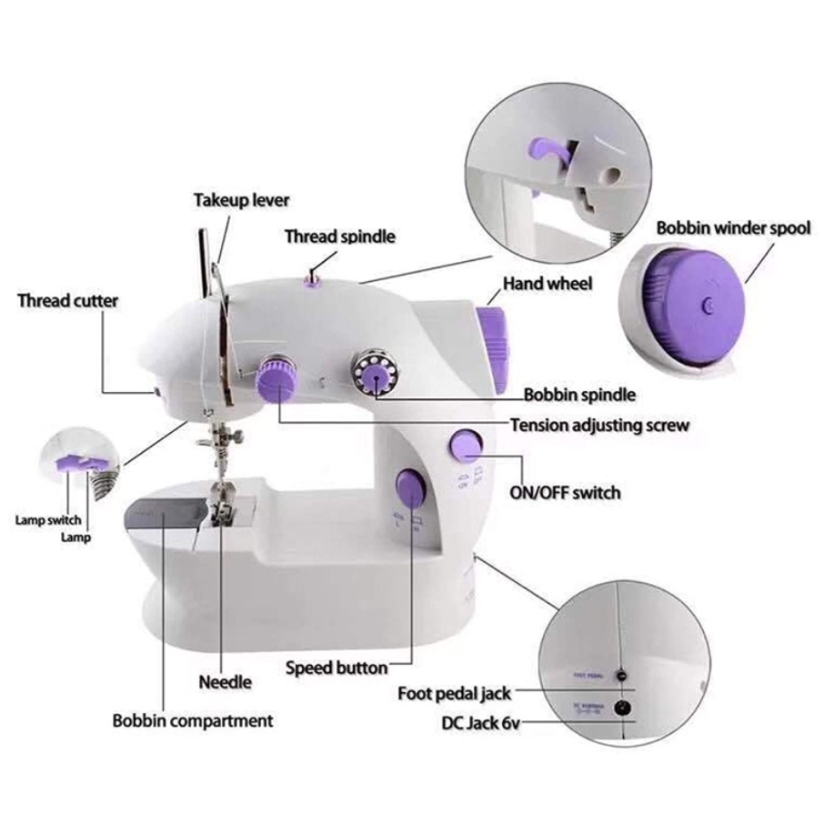 HomeCare Portable Mini Sewing Machine With Foot Pedal Control & Double Threads 2-Speed Control