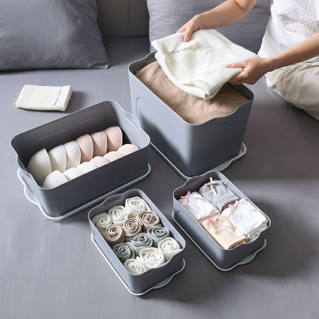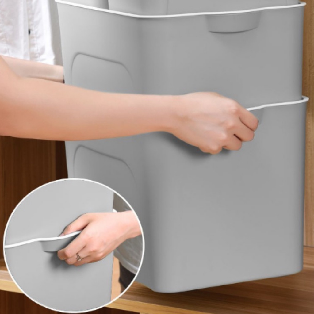 HomeIQ Gray Storage Boxes Organizer with Handle And Lid Minimalist Japanese Style