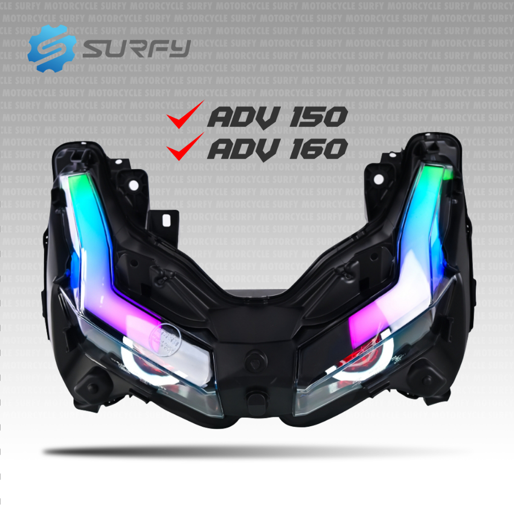 Honda ADV 160 ADV 150 HID Headlight Assembly With Angel Eyes RGB LED VIVID Color Plug And Play