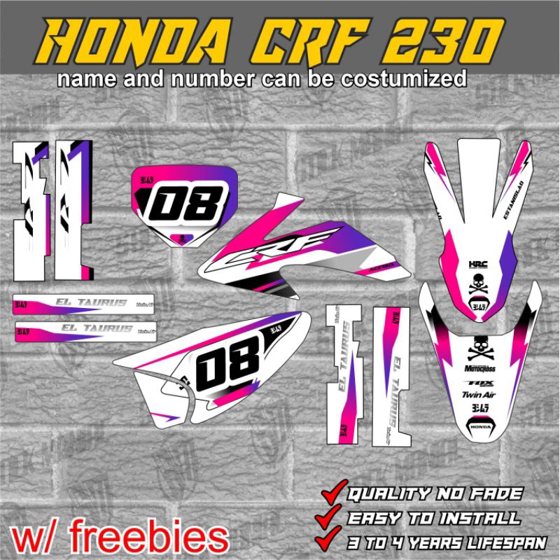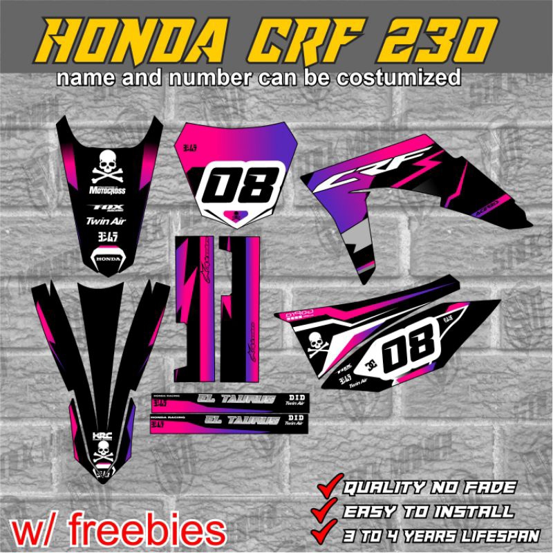 Honda CRF 230 decals stickers, laminated