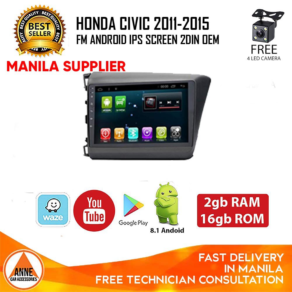 Honda Civic 2012 - 2015 Car 2 DIN Android GPS head unit 2GB RAM + 32GB ROM / 1GB RAM + 16GB ROM EP