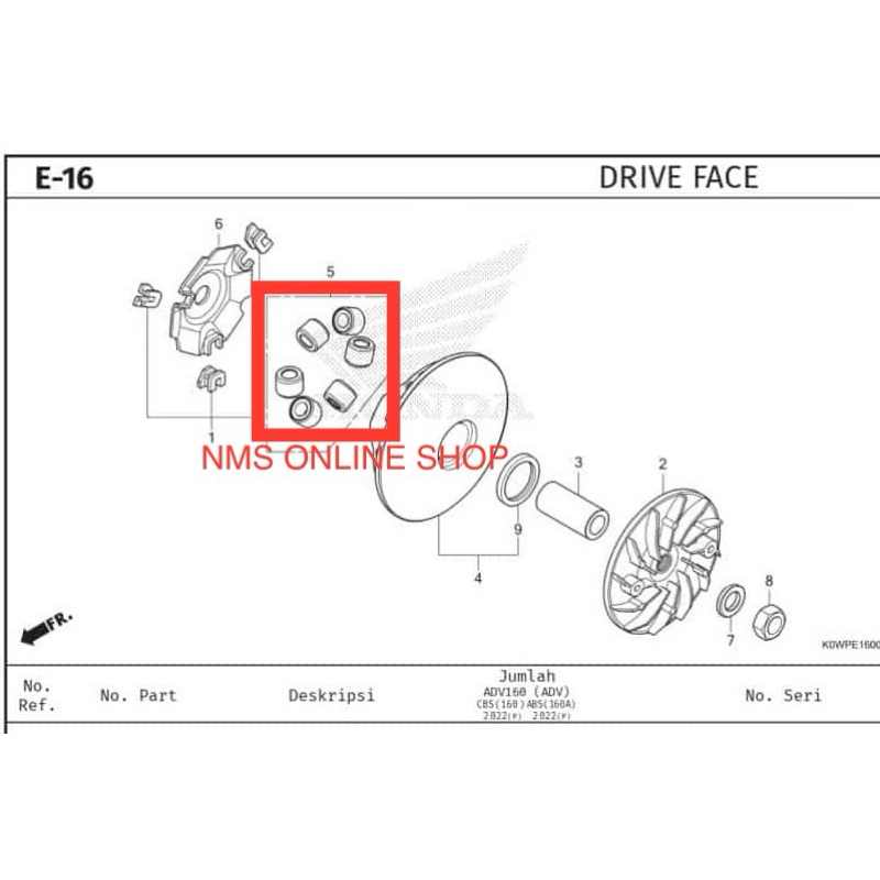 Honda Fly ball / Roller Weights ADV 160 / PCX 160 / CLICK 160 - 19g FLYBALL Roller Set 22103-KOS-V00