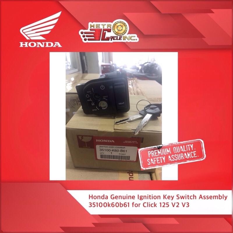 Honda Genuine Ignition Switch Assembly / Key Set 35100K60B61 for Click 125 v2 & v3