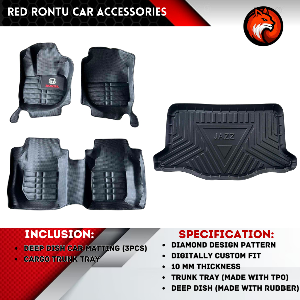 Honda Jazz 2014-2021- Deep Dish and Trunk Tray Car Matting (Combo set), car accessories