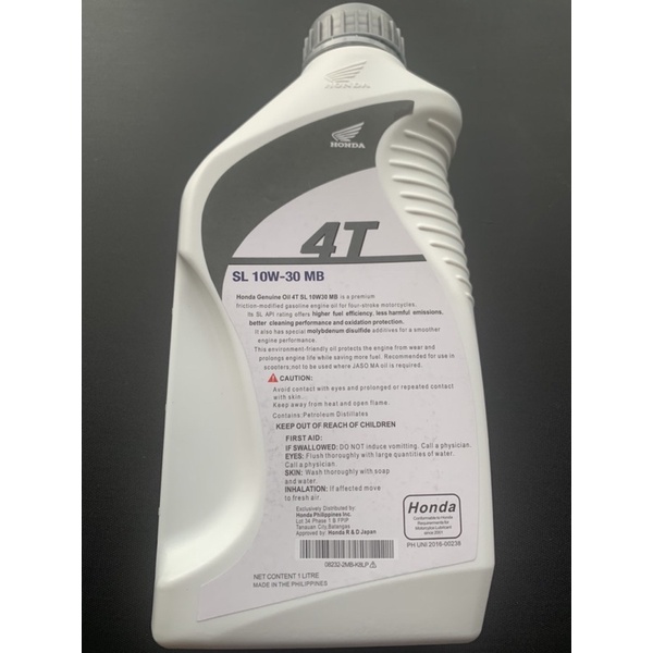 Honda Motor Oil 4T API SJ SAE 40 MA , 4T API SL SAE 10W-30 MB