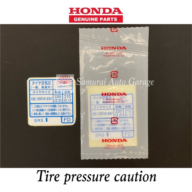 Honda parts JDM Fuel Filler Caution Label Tire Pressure Side Airbag SRS Airbag Sticker