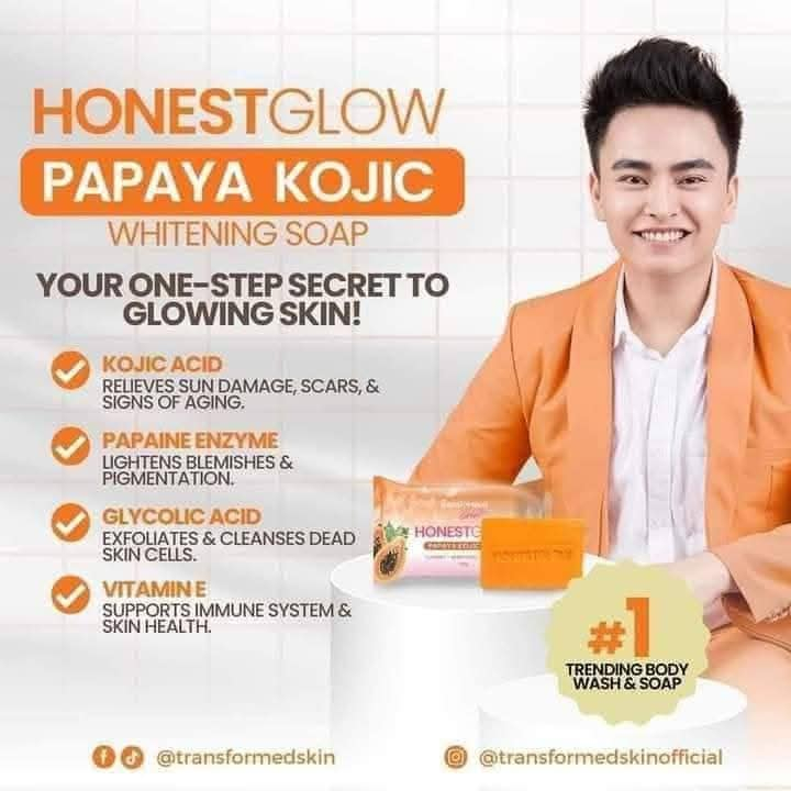 Honest Glow Glass Skin Soap| Honest Glow Kojic Papaya Soap| Treats Acne, Brightens Dark Spot