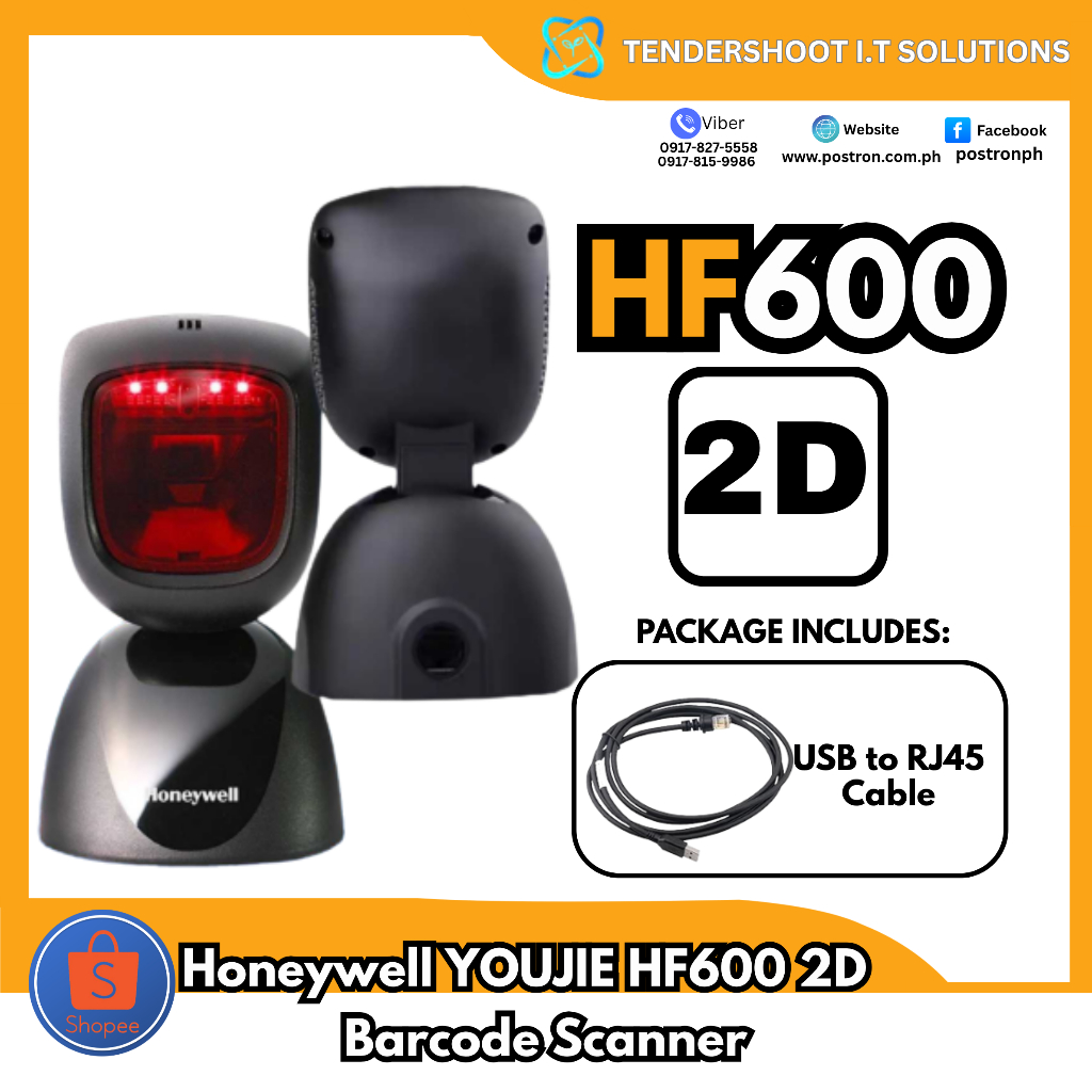Honeywell YOUJIE HF600 1D/2D barcode scanner with USB cable