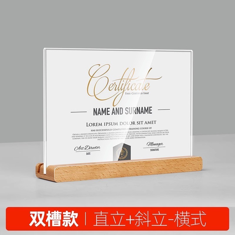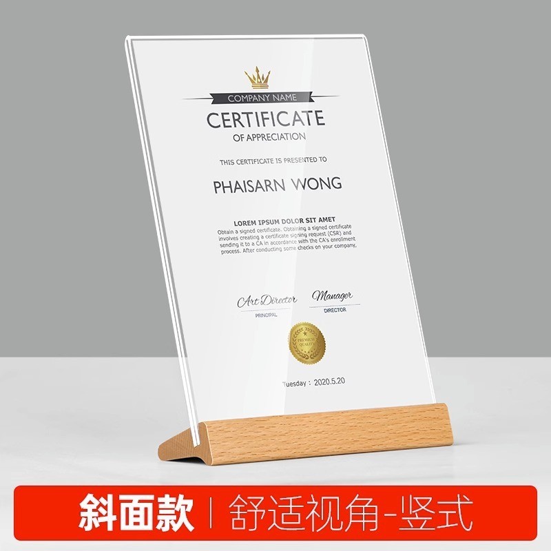 Honor Certificate Frame Bracket Acrylic Patent Authorization Framed Wooden Table Decorationa4Photo Frame Award Display Frame