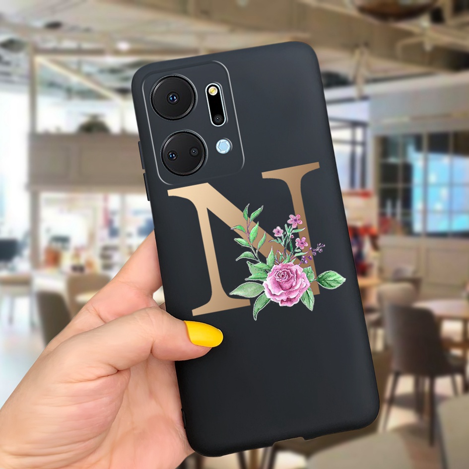 Honor X7a Case 2023 Fashion Black Silicone Letters Slim Back Cover HonorX7a 4G RKY-LX2 Phone Case Shell 6.75 inch