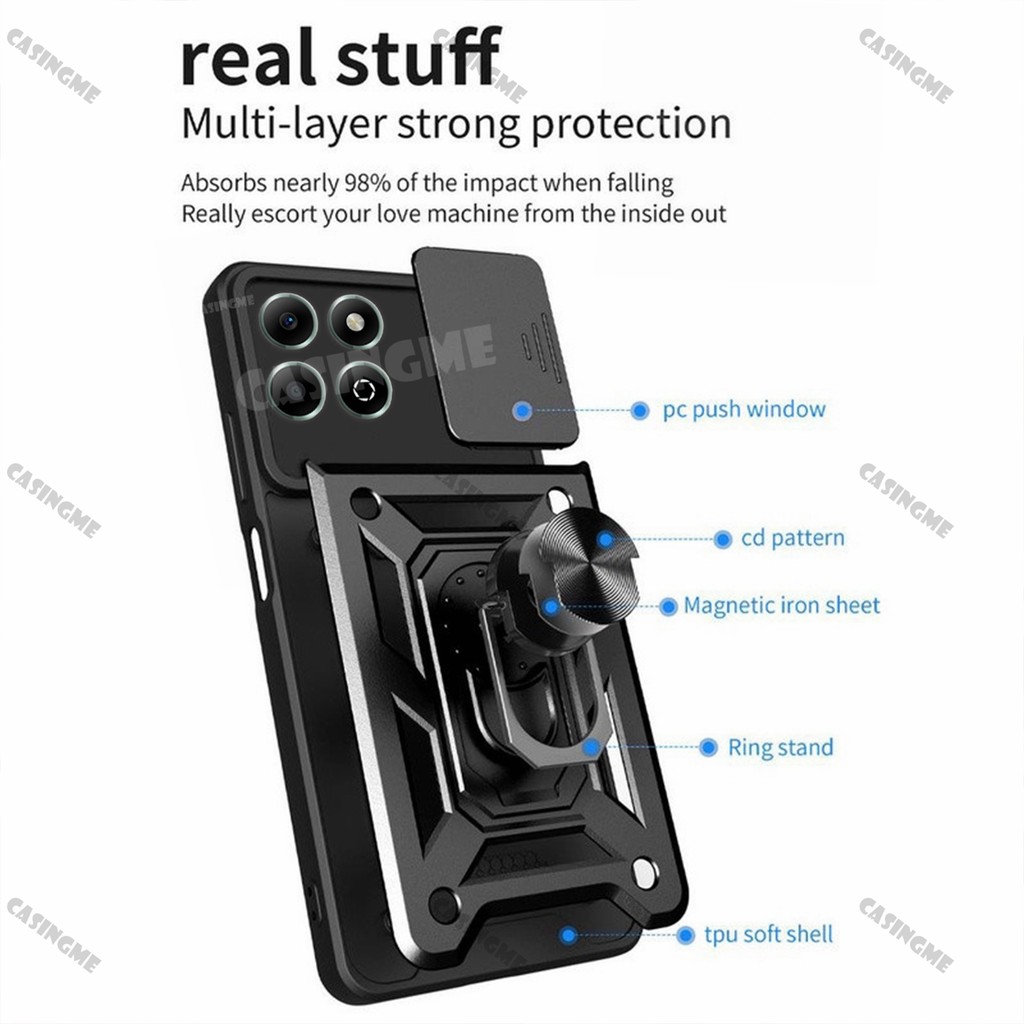 Honor X7c Shockproof Armor Casing For Honor X7c Honor X7C X 7c X7 c 4G 5G 2024 Car Magnetic Ring Back Cover Push Pull Camera Protect Shell Phone Case