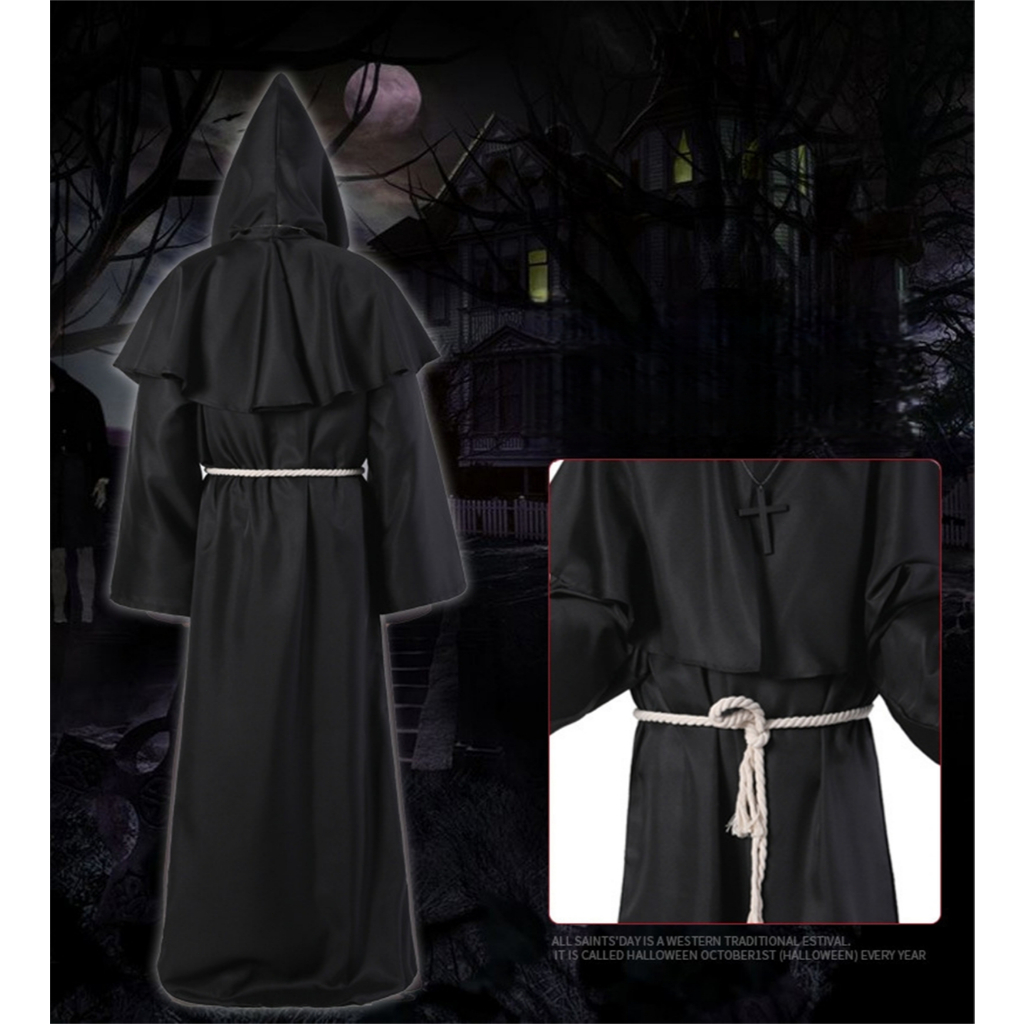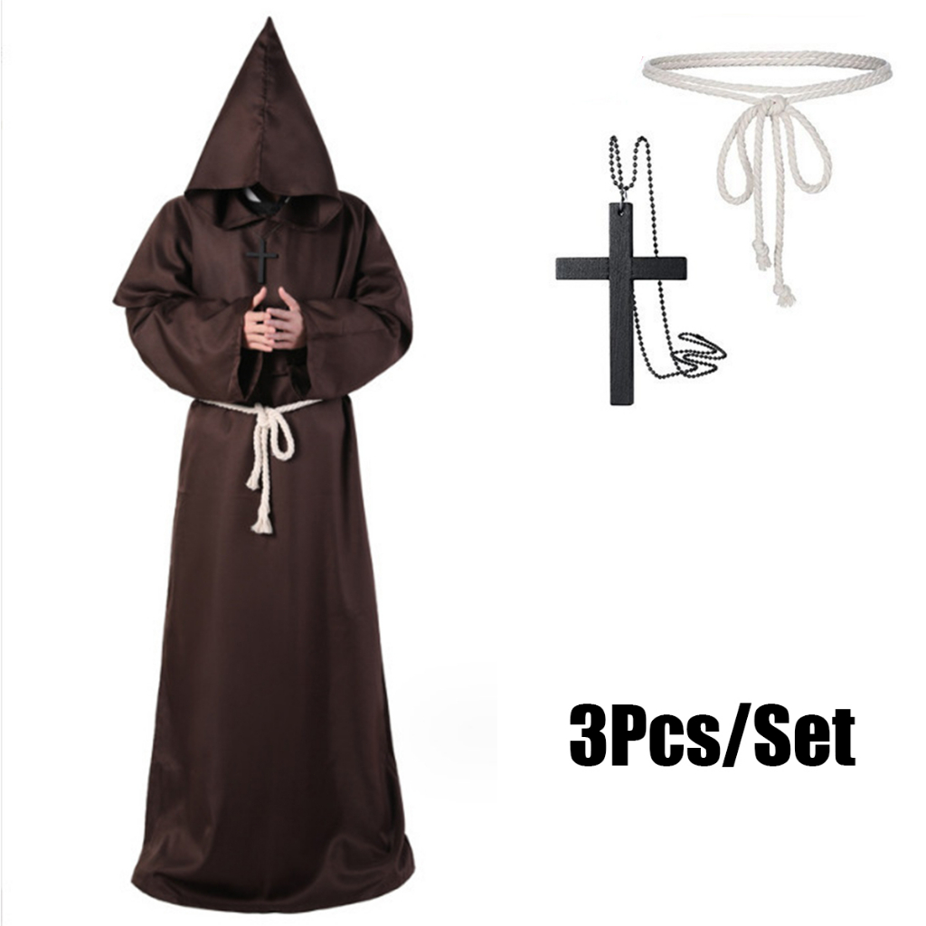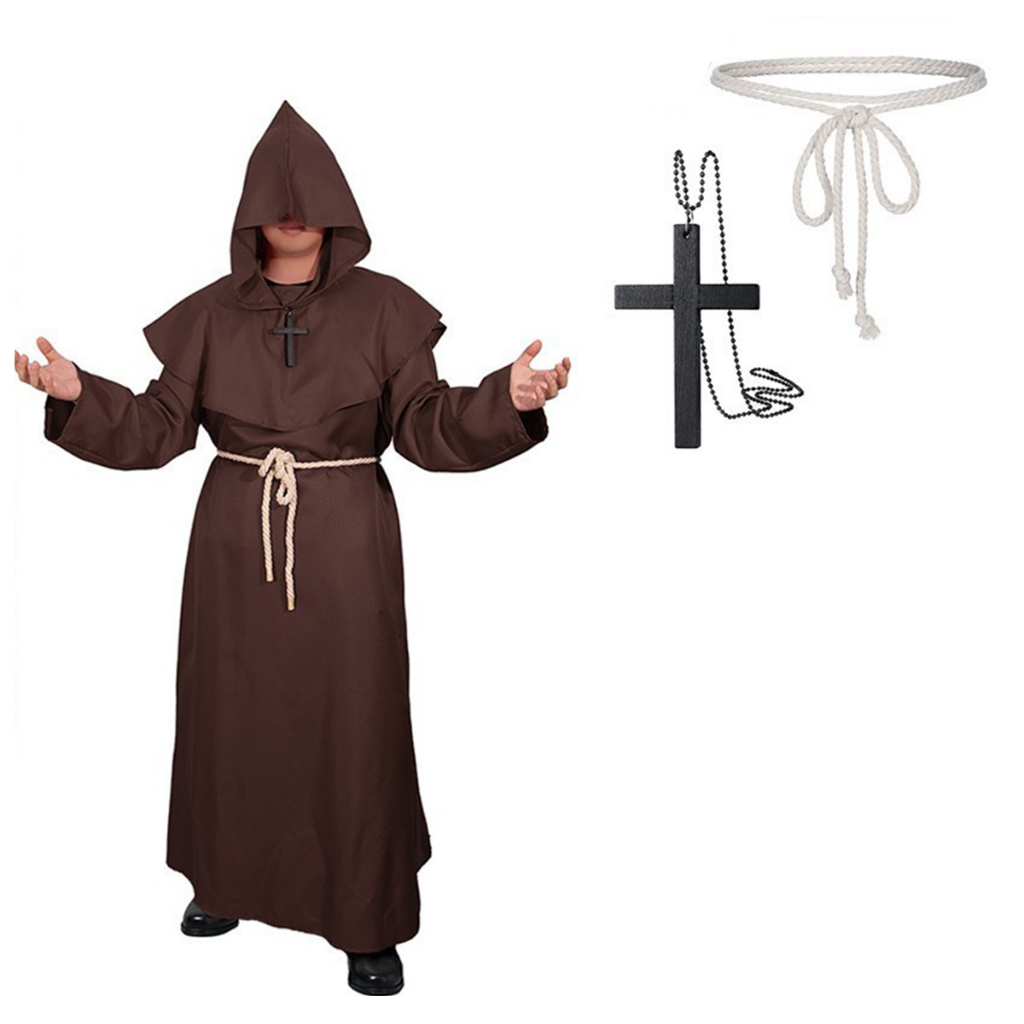 Hooded Medieval Friar Robe Costume For Halloween Cosplay Events Theme Party Monk Outfit Adults