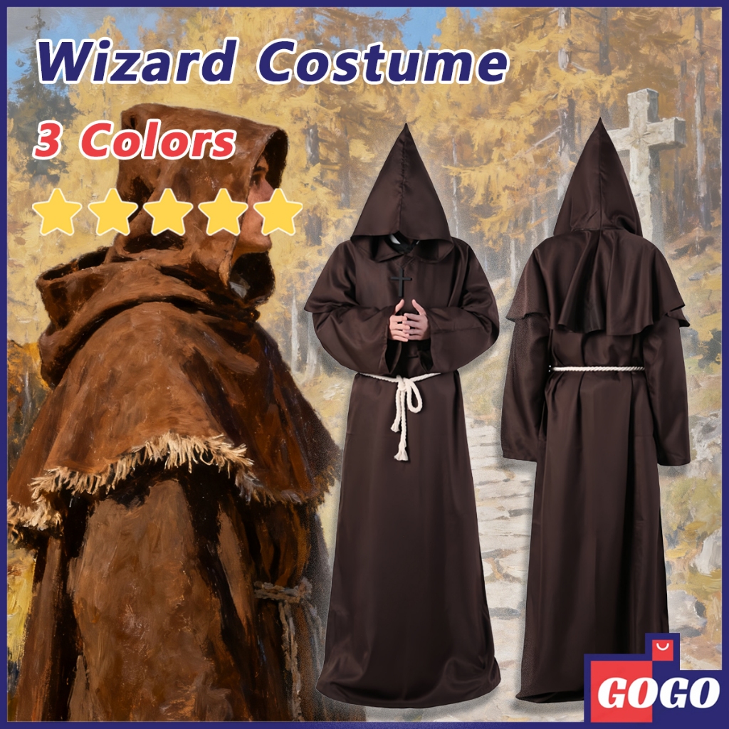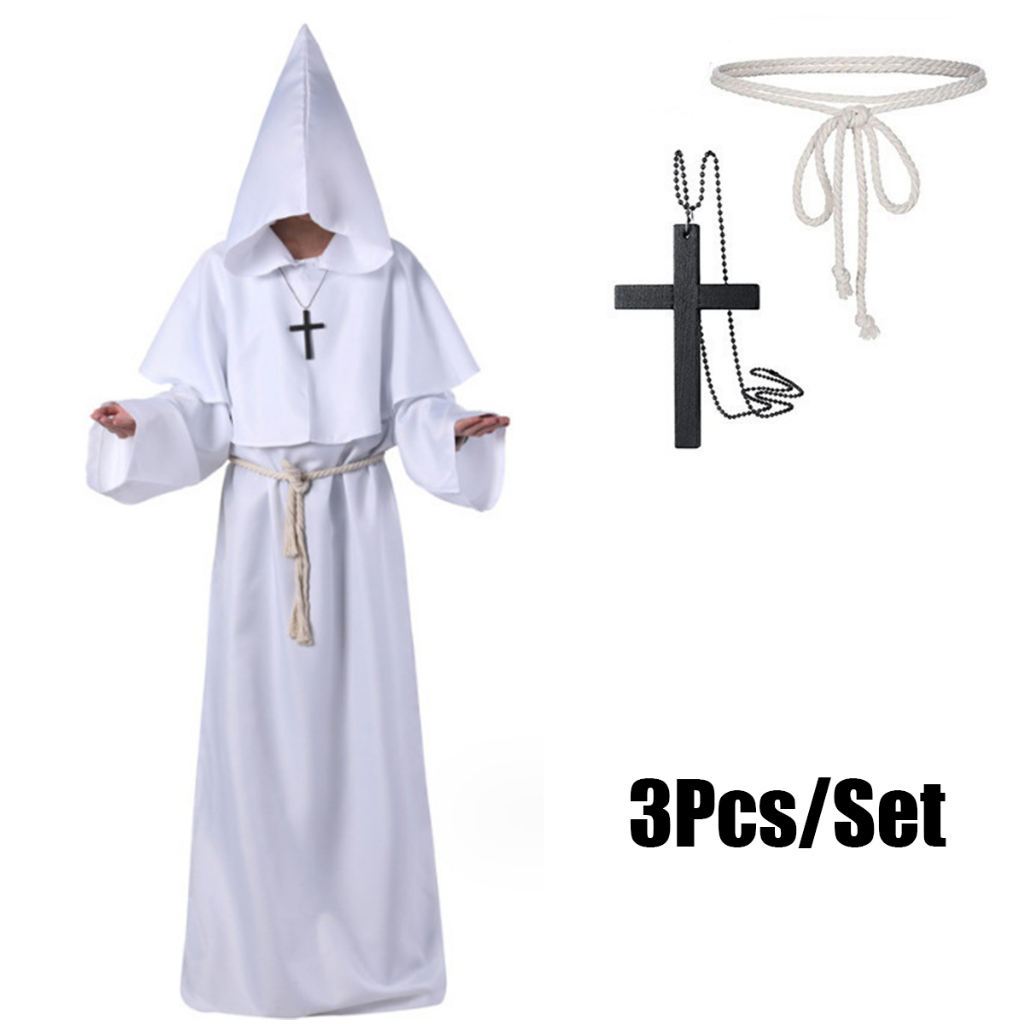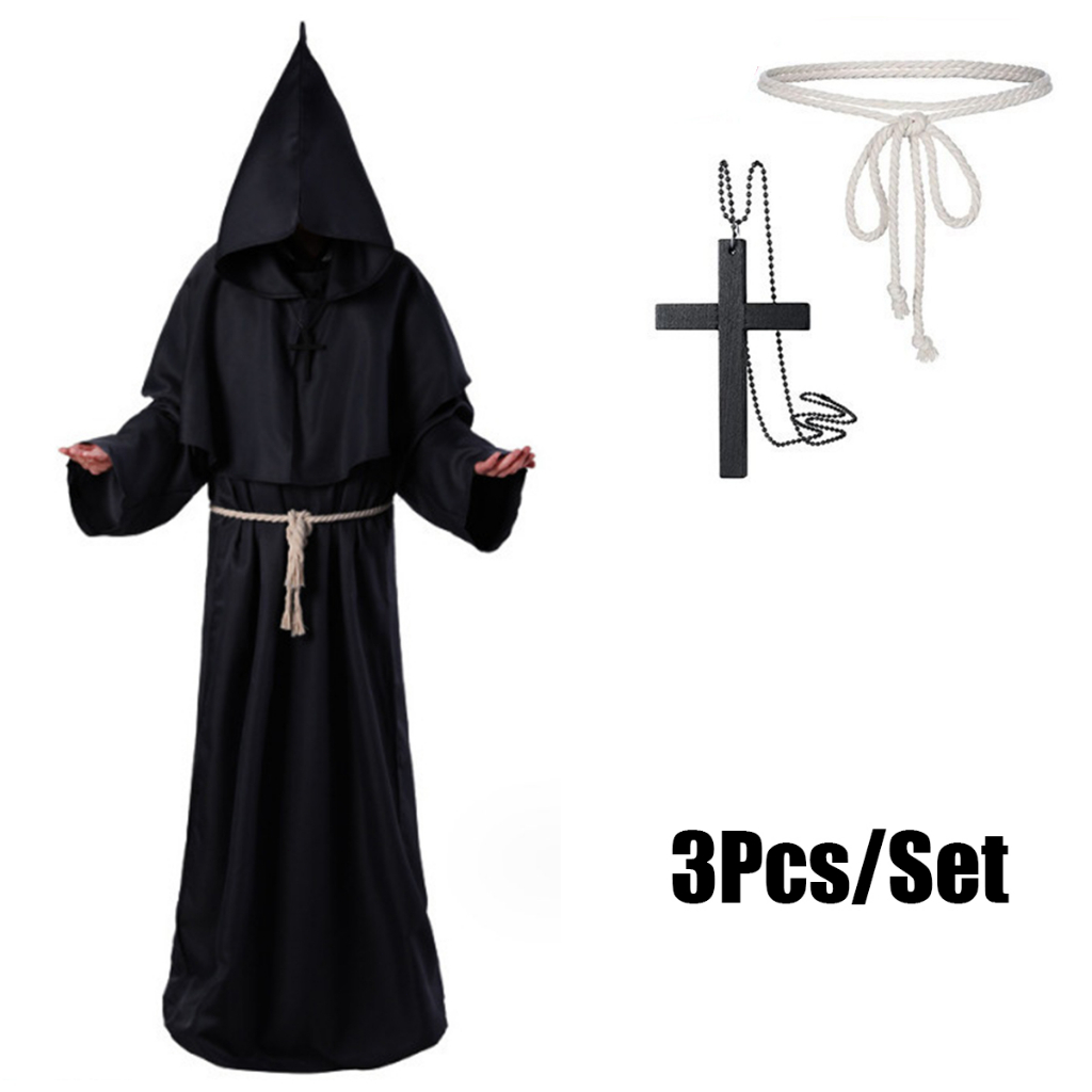Hooded Medieval Friar Robe Costume For Halloween Cosplay Events Theme Party Monk Outfit Adults