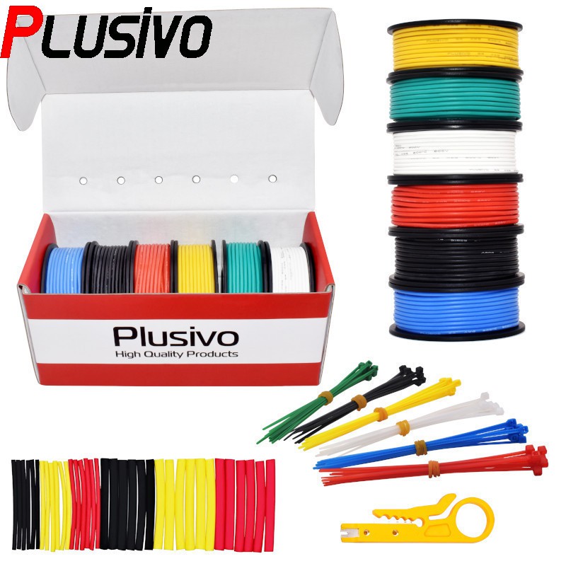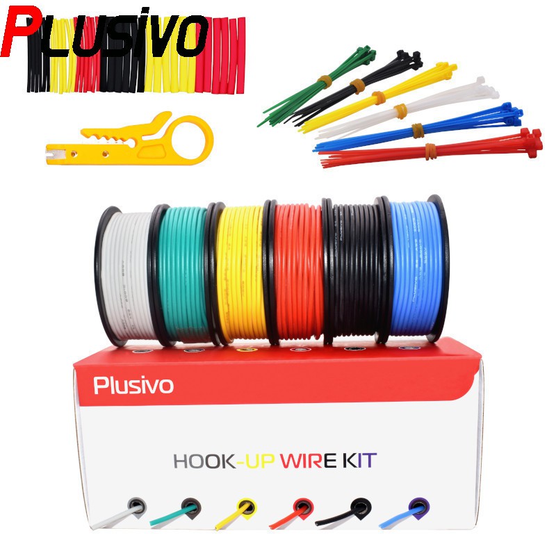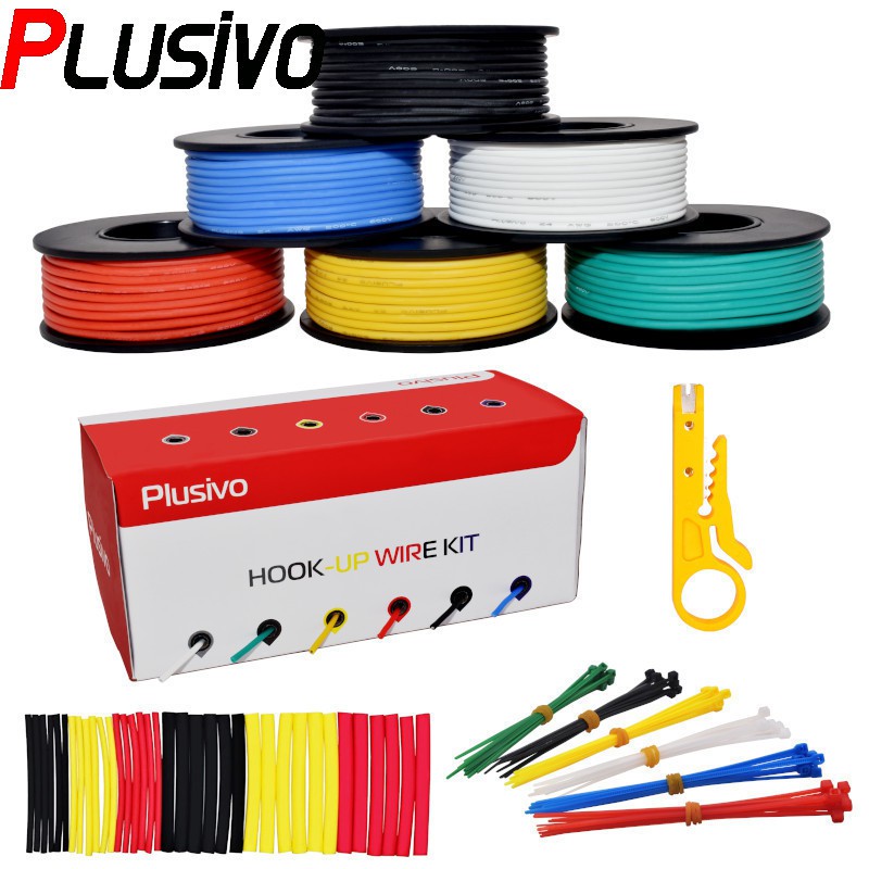 Hookup Wire Kit (6 colors, 9 m each, AWG 24 Stranded Wire) Silicone Jacket
