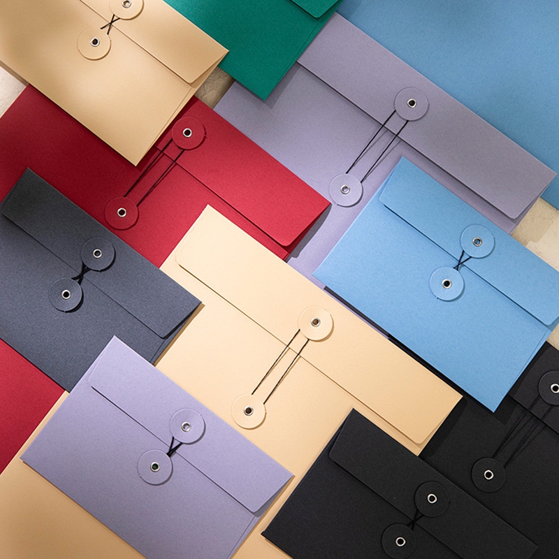 Horizontal Kraft Paper Envelopes Vintage File Folder Office Winding Ticket Storage Bag with Button String Tie Gifts Wrap File Documents Bag Business Greeting Cards