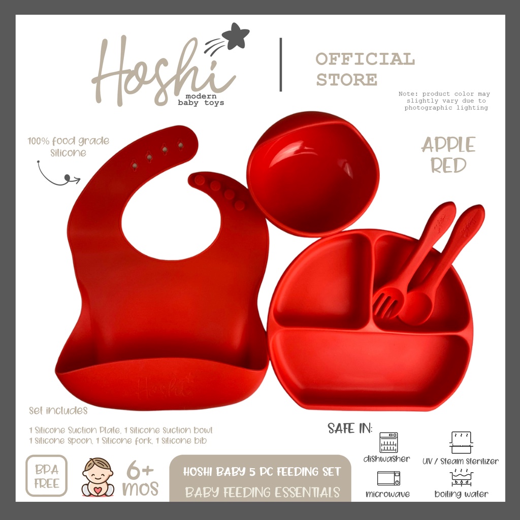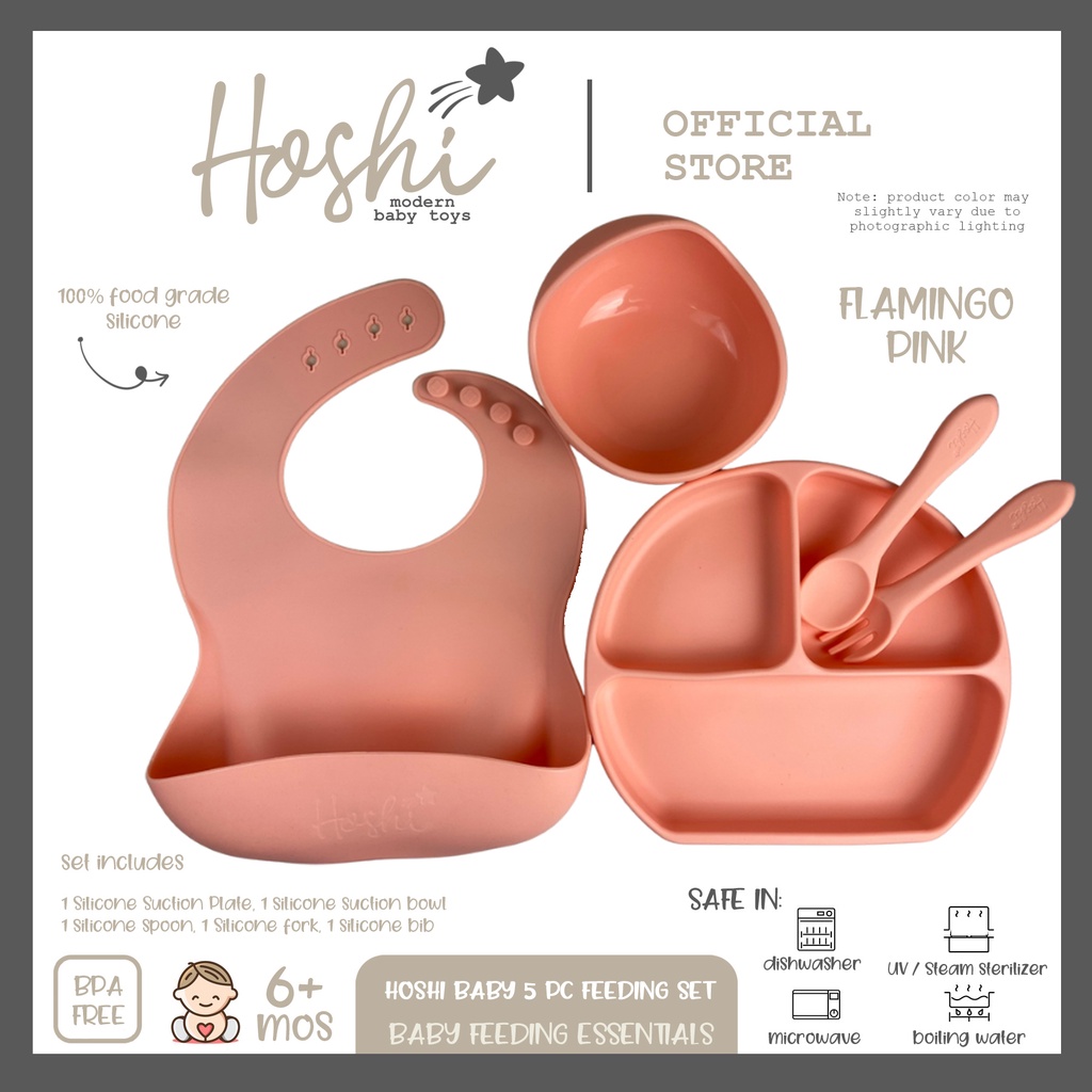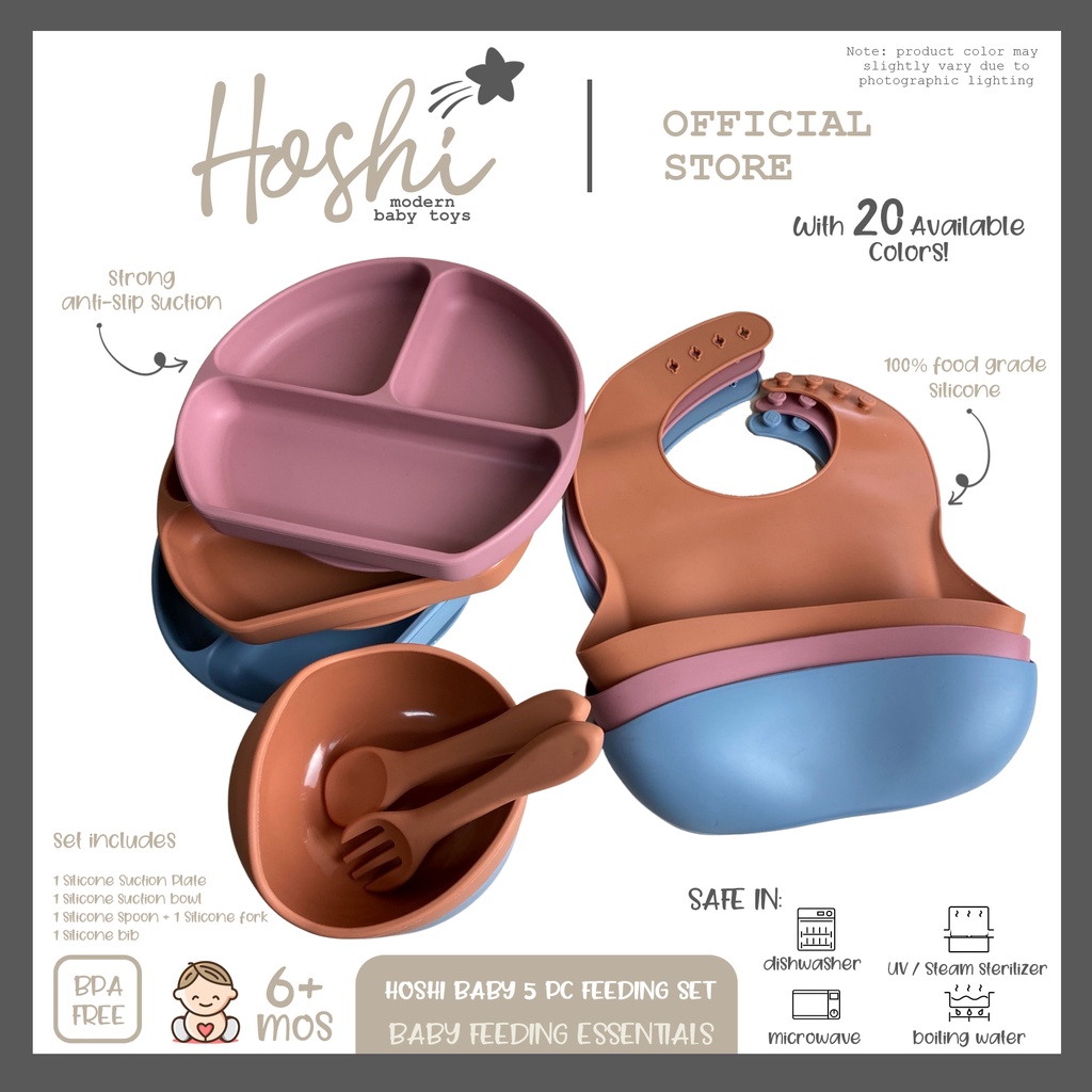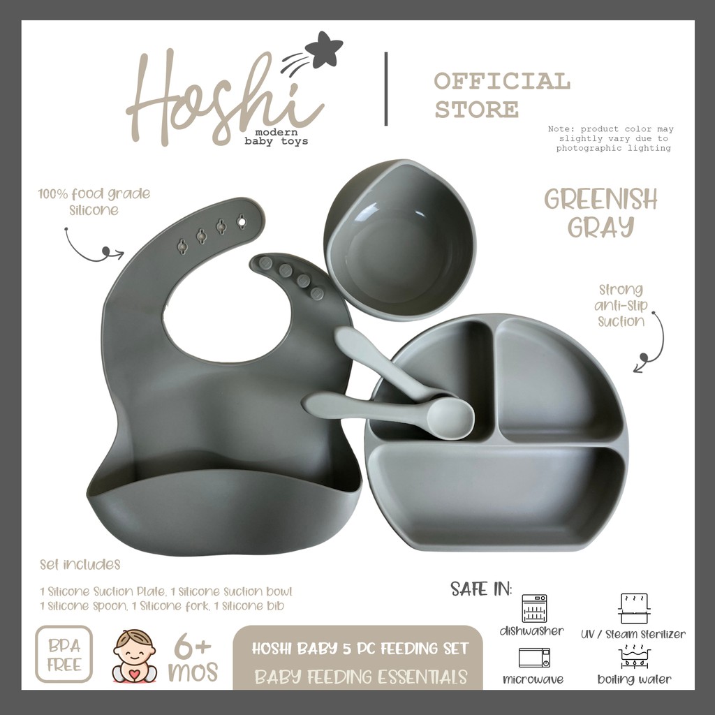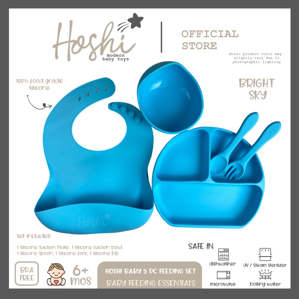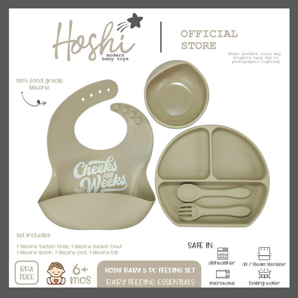 Hoshi Baby "5pc Classic Silicone Feeding Set", 100% Food Grade Silicone, BPA Free Infant Toddler