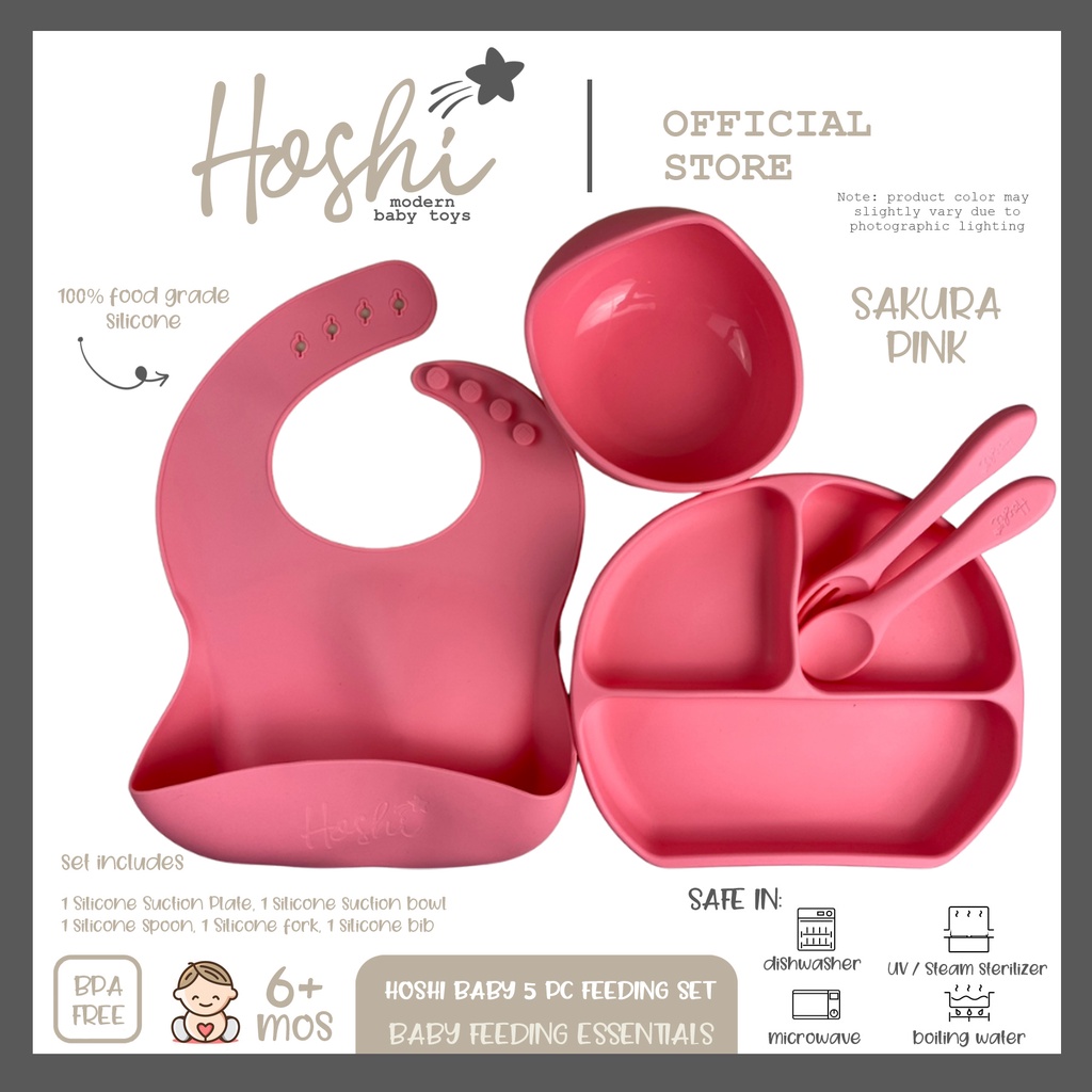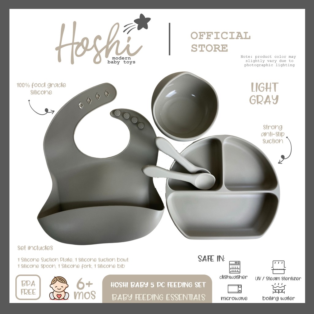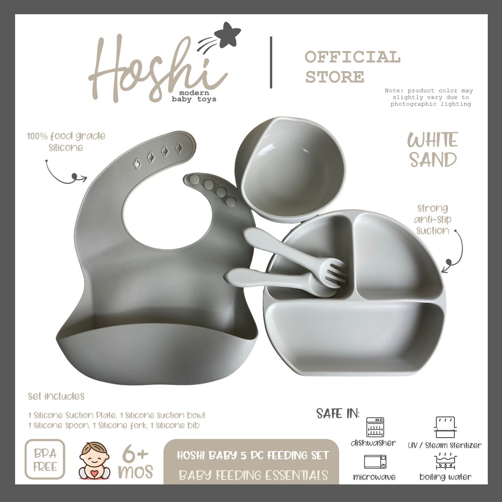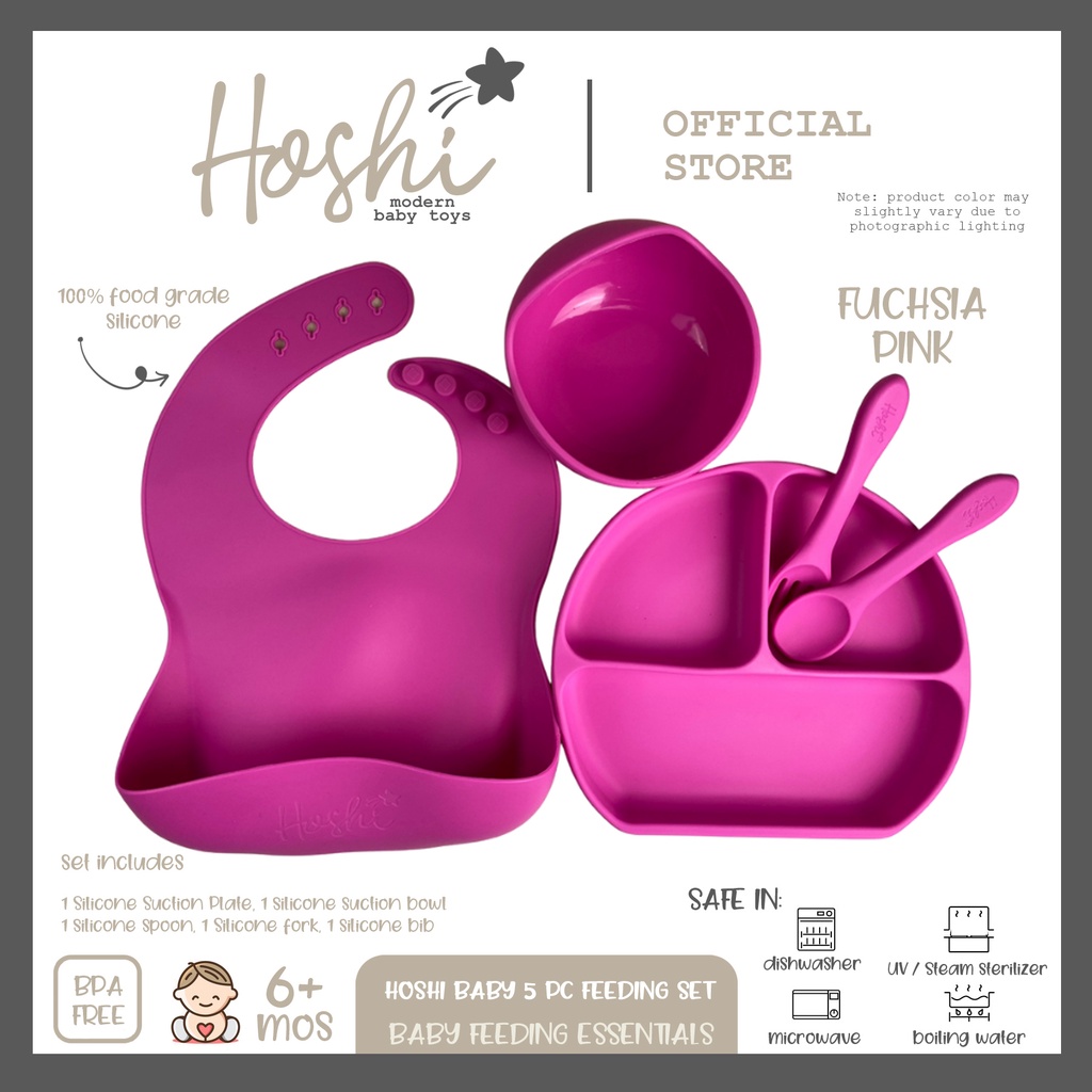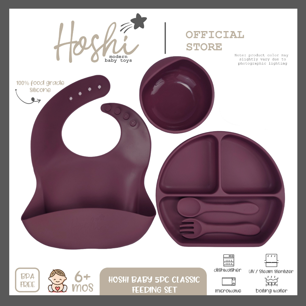 Hoshi Baby "5pc Classic Silicone Feeding Set", 100% Food Grade Silicone, BPA Free Infant Toddler