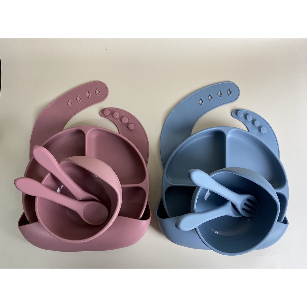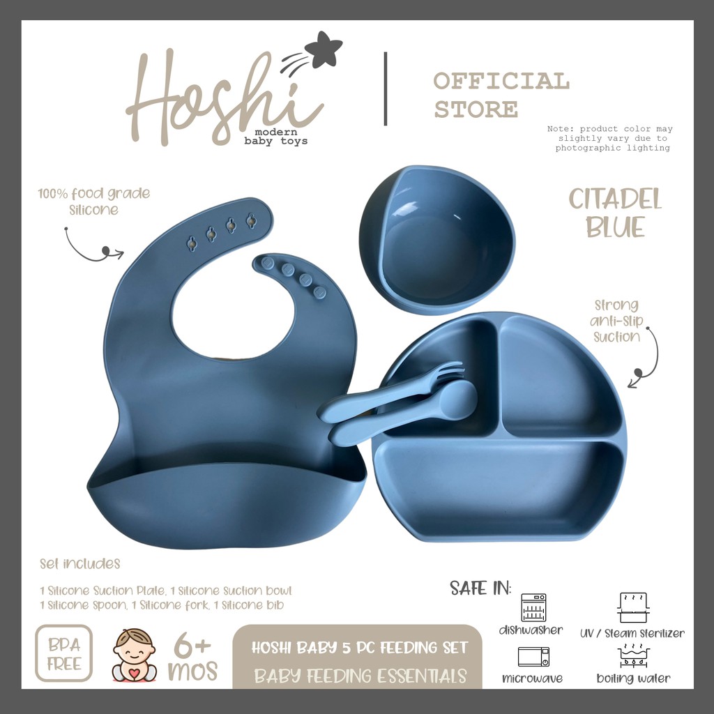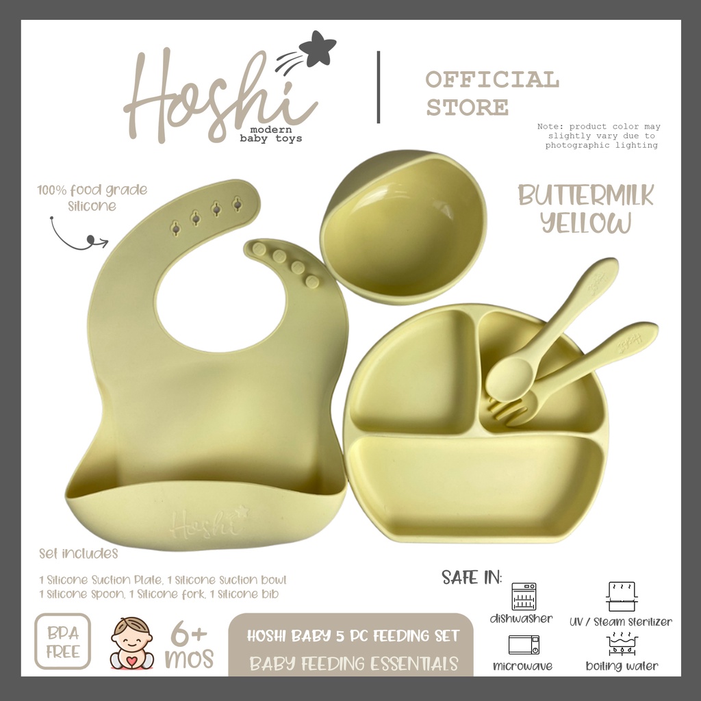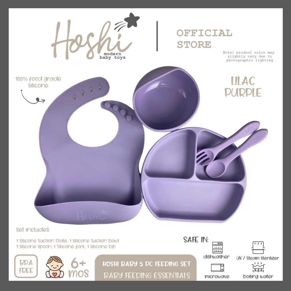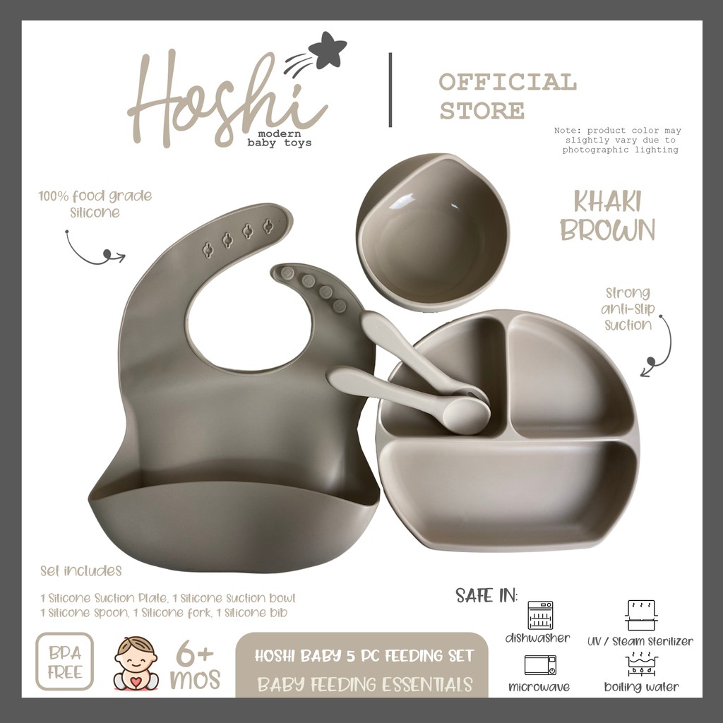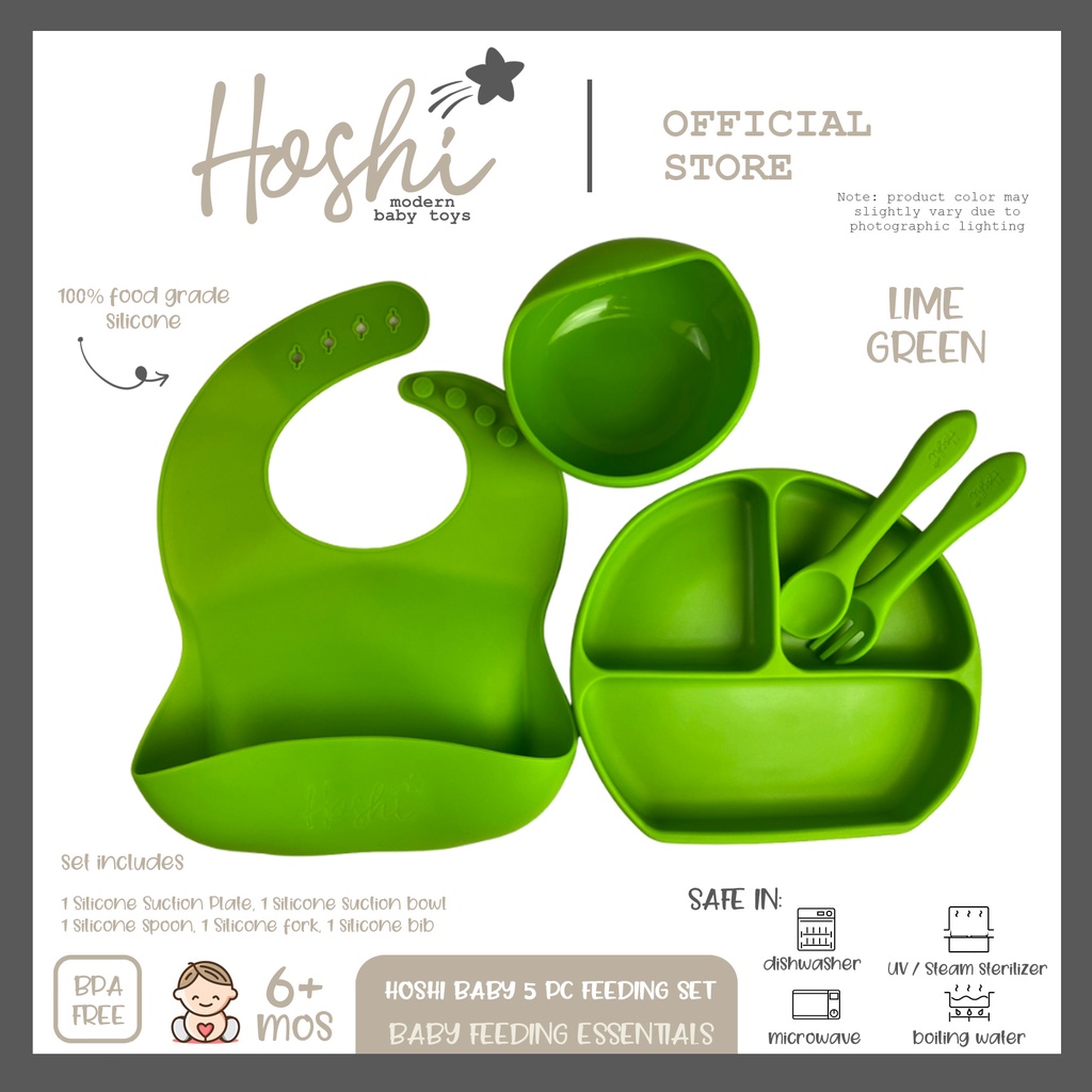 Hoshi Baby "5pc Classic Silicone Feeding Set", 100% Food Grade Silicone, BPA Free Infant Toddler