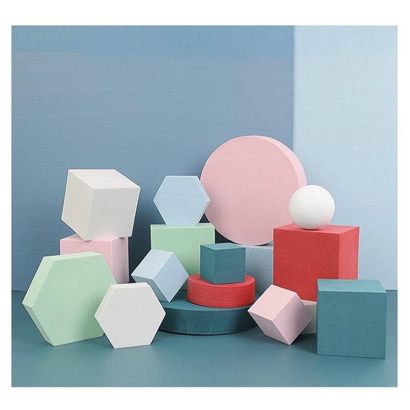 Hot Sales White Pink Color Cube Photo Shooting Props Foam Geometric Cube Photography Backdrop