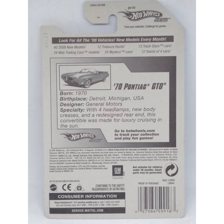 Hot Wheels - '70 Pontiac GTO (SEALED)