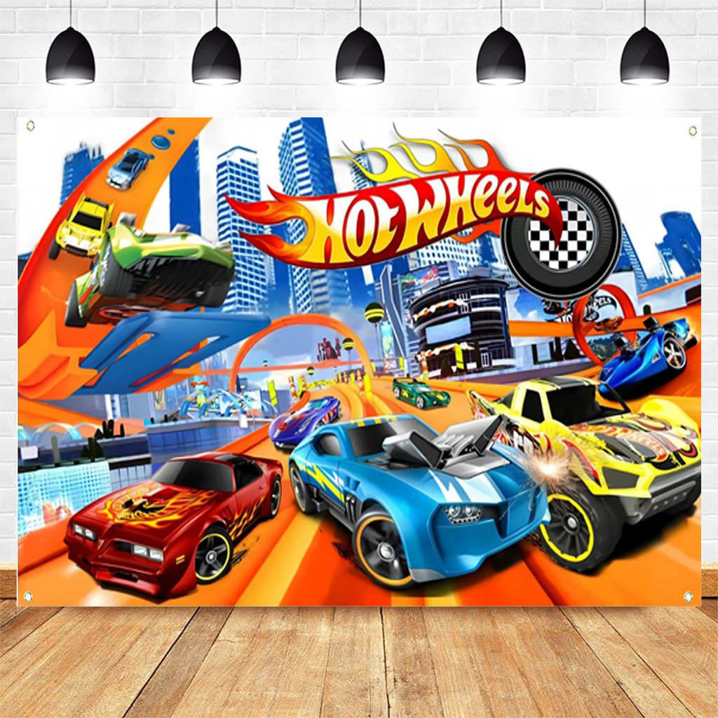 Hot Wheels Theme Background Cloth Cool Racing Car Photo Banner Boys Kid Birthday Party Decoration Supplies Blue Red Happy Birthday Site Layout Props