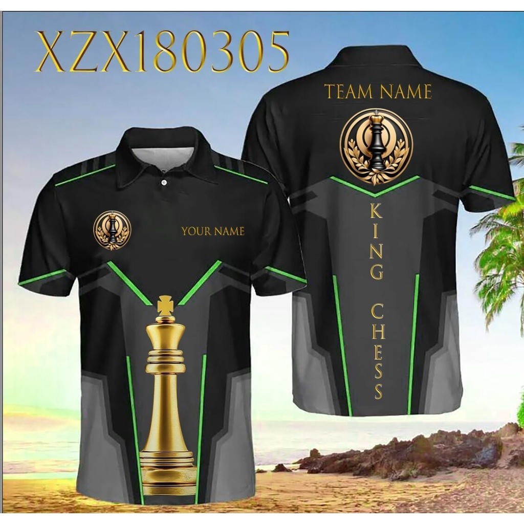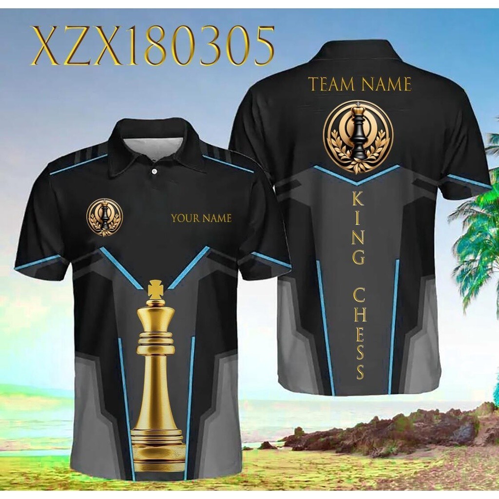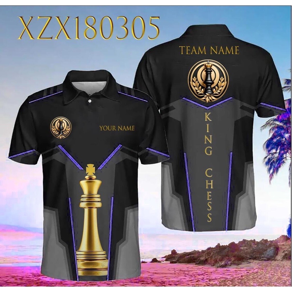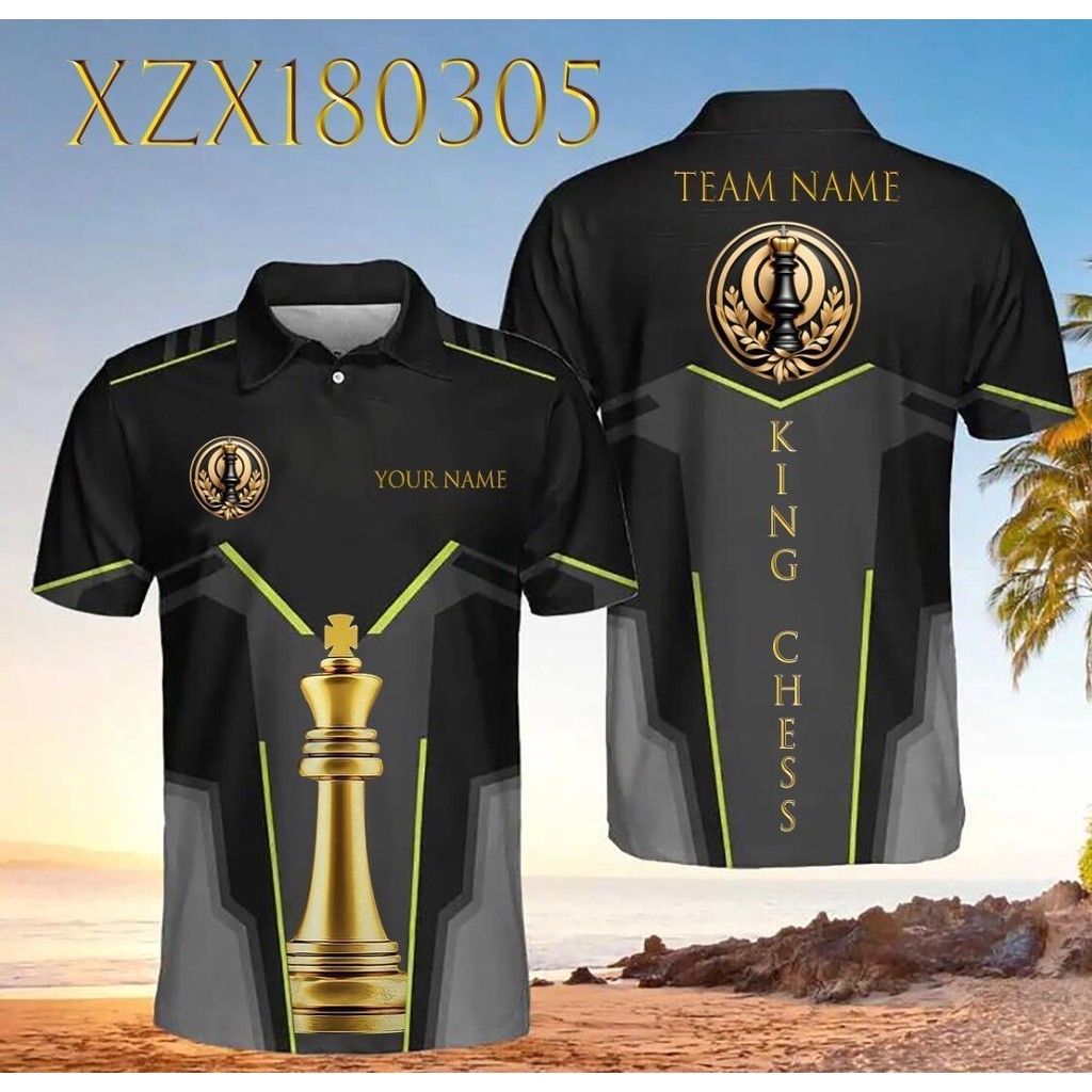 Hot stamping series international chess custom chess king 3D sublimation design fully printed polo shirt - size xs-6xl, free customization