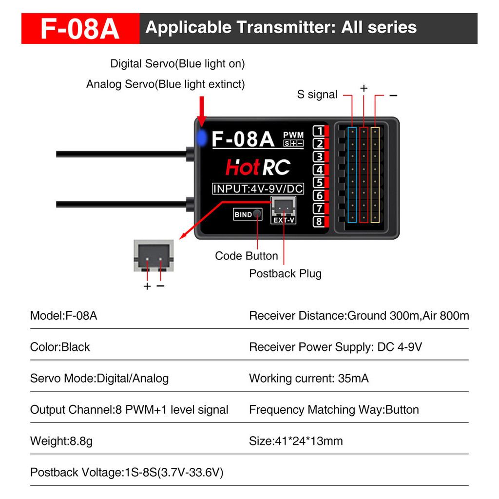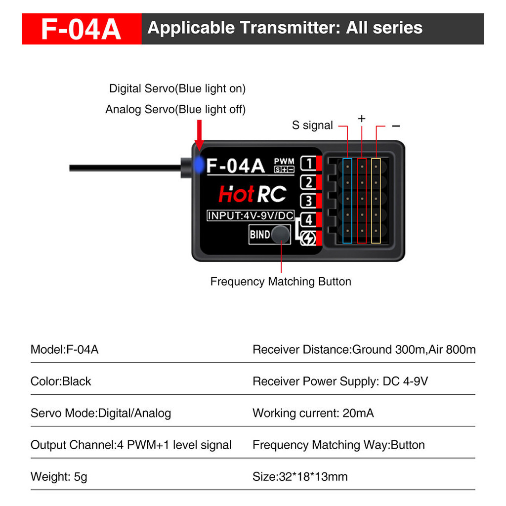 HotRC 4/5/6/8CH RC Receiver 2.4GHz Multi Channels Receivers with Gyro Long Range for CT-4A CT-6A CT-8A HT-6A HT-8A DS600