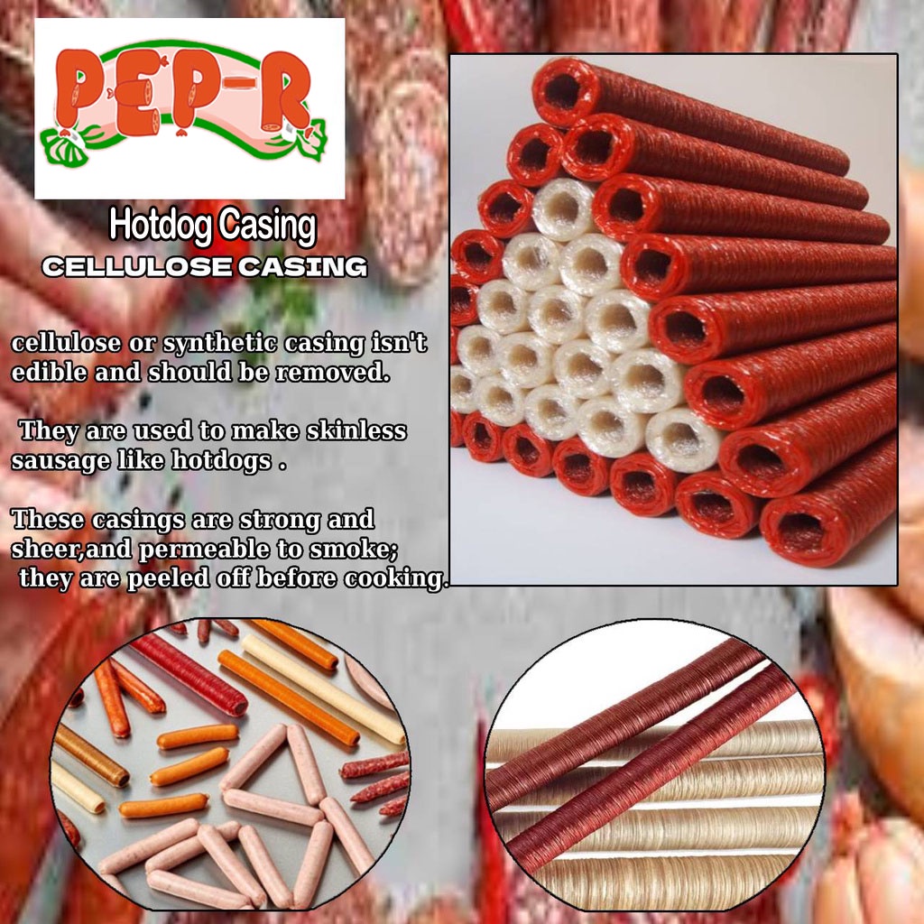 Hotdog Casing Clear/Red Cellulose Sausage Casing 110 FT.(33.5meters) per stick non-edible