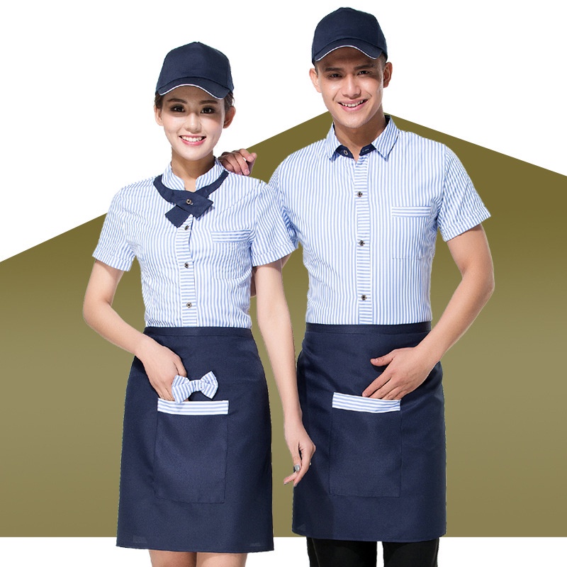 Hotel Restaurant Waiter Uniform Women Coffee Milk Tea Shop Waitress Uniform Short Sleeve Fast Food Work Service Wear Bar Work Clothing