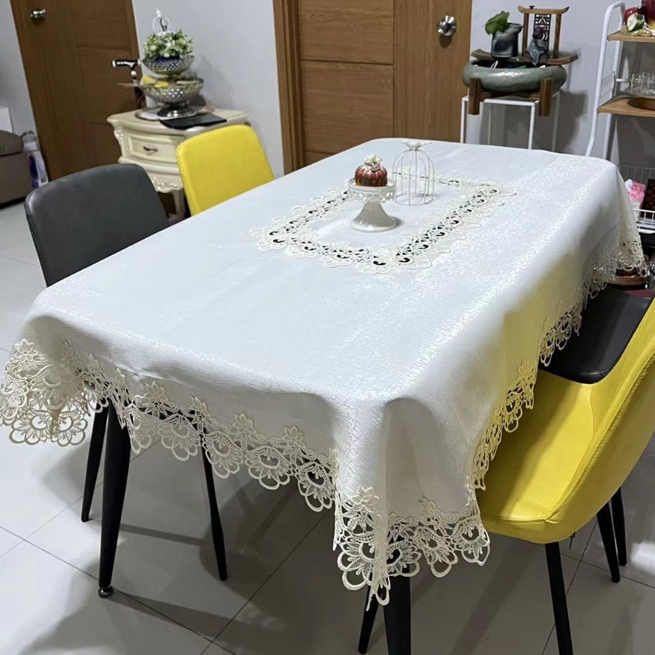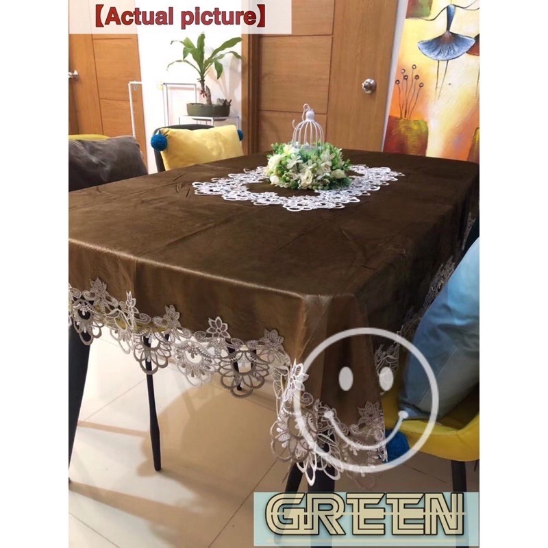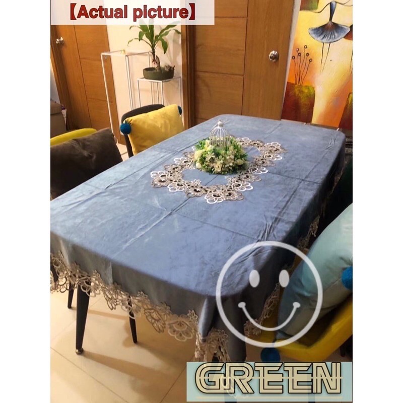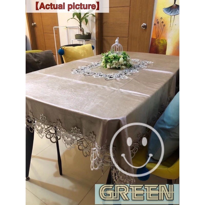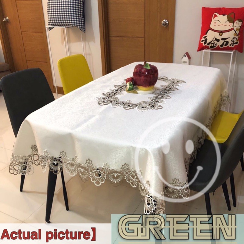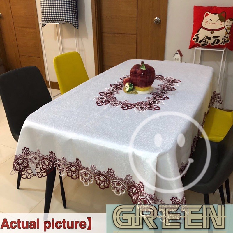 Hotel Table Cover Waterproof Wash-Free Coffee Tablecloth Lace Cover 8 Seater 180x220 cm [ GreeN ]