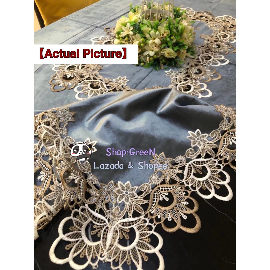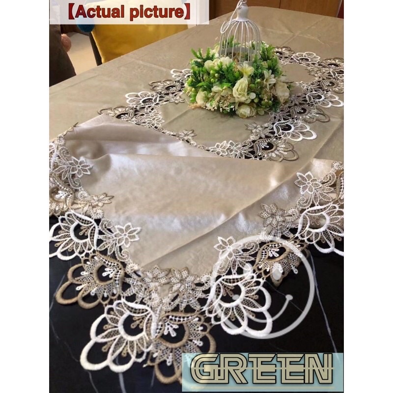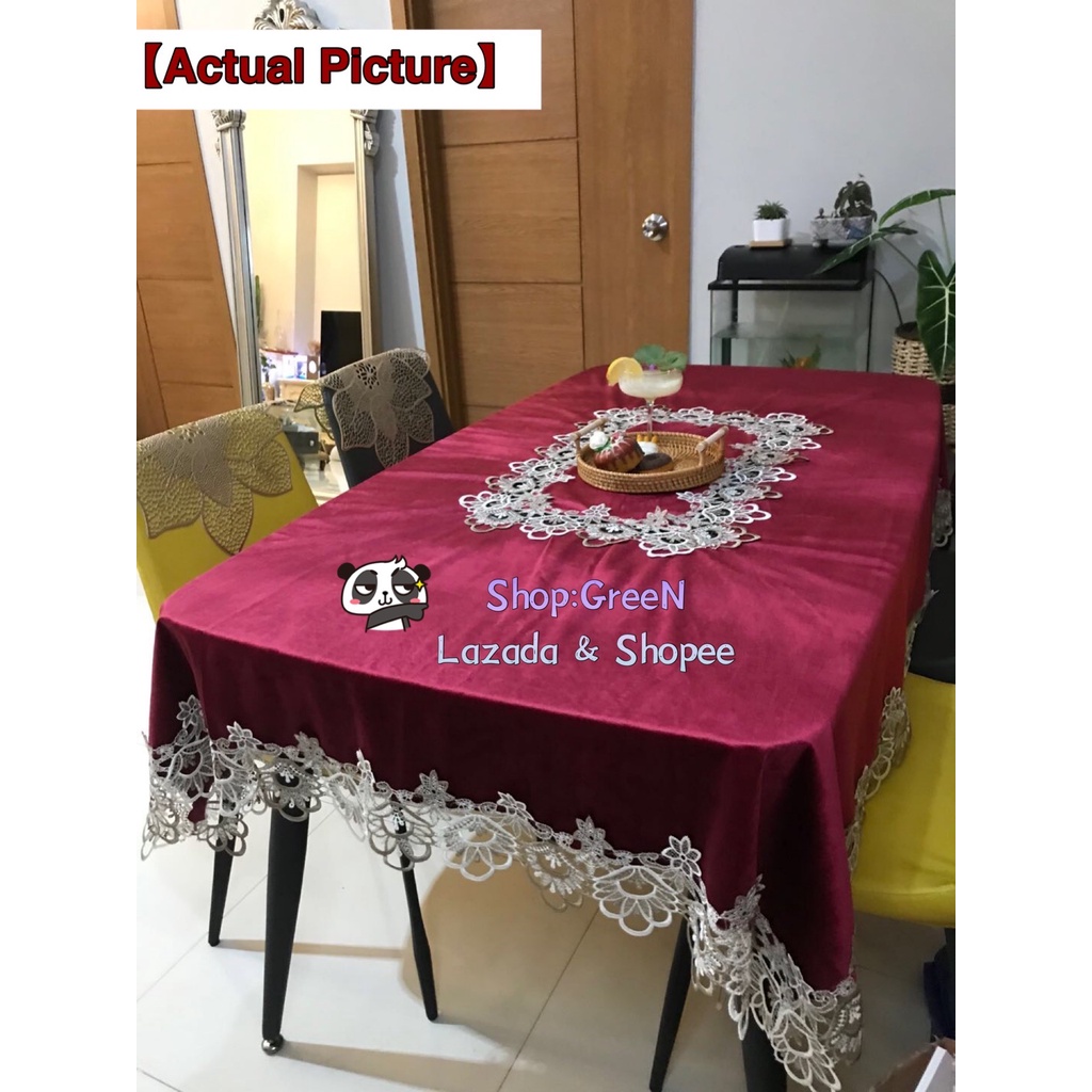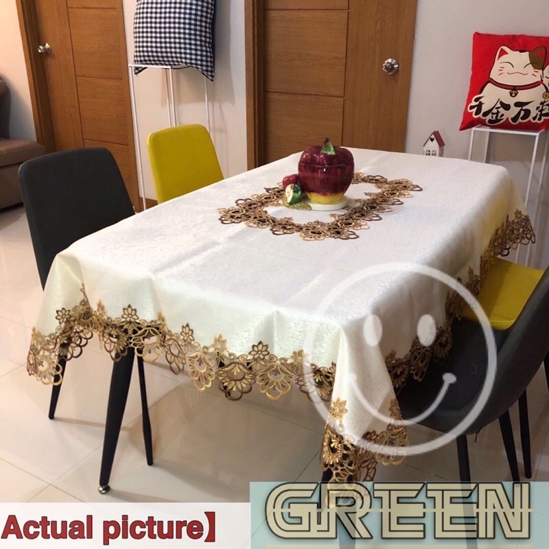 Hotel Table Cover Waterproof Wash-Free Coffee Tablecloth Lace Cover 8 Seater 180x220 cm [ GreeN ]
