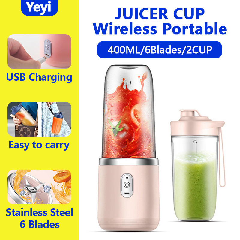 【COD 】Portable Electric Fruit Juicer 400ML/2 Cups Heavy Duty Fruit Presser Shake Wireless Blender